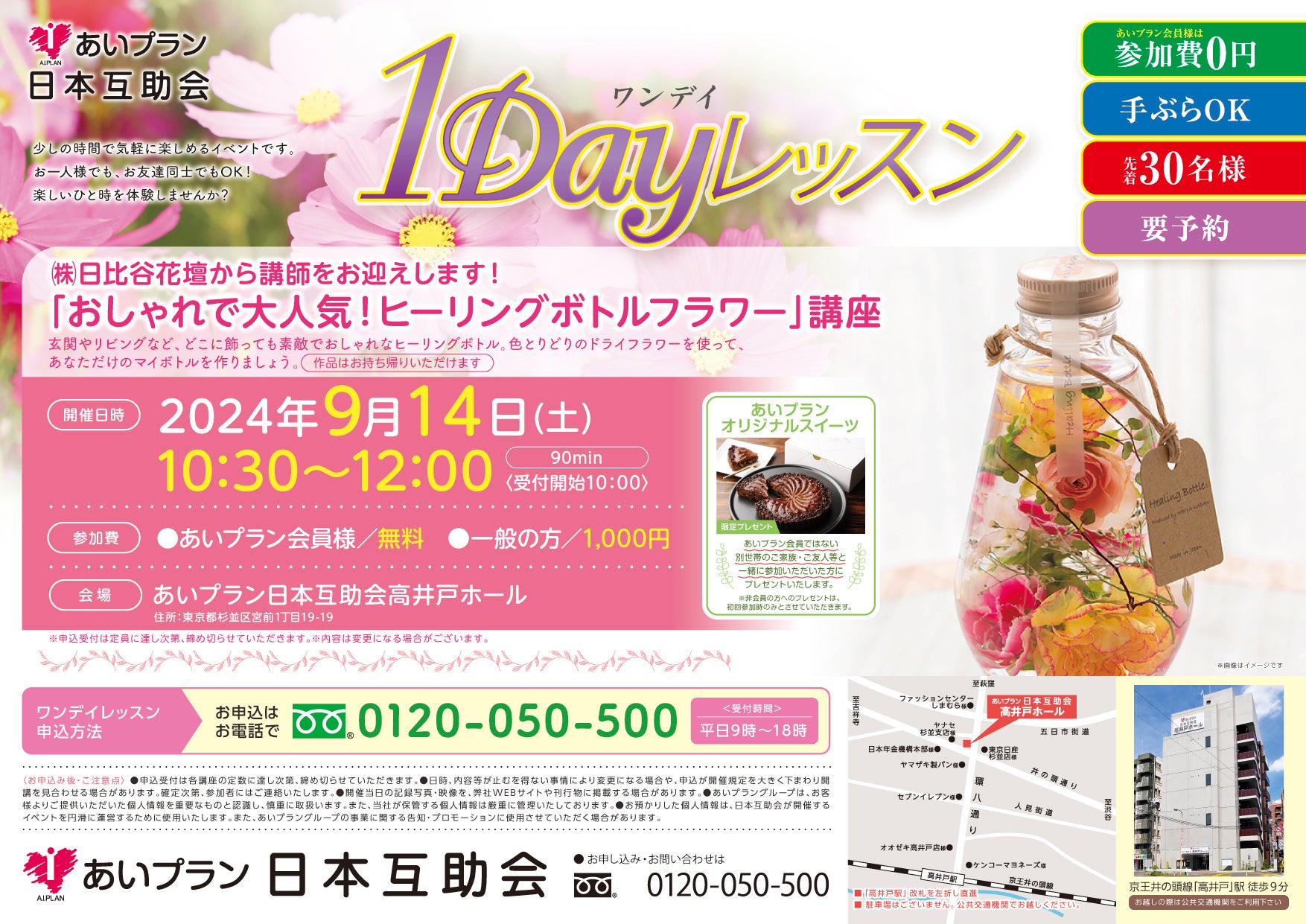 ワークショップ『1DAYレッスン』は、様々なテーマで毎月開催しご好評をいただいています。あいプラン会員様だけでなく、お友だちやご家族と一緒にご参加OKなのも嬉しいポイント。持ち物などもございませんので、お気軽にご参加ください。