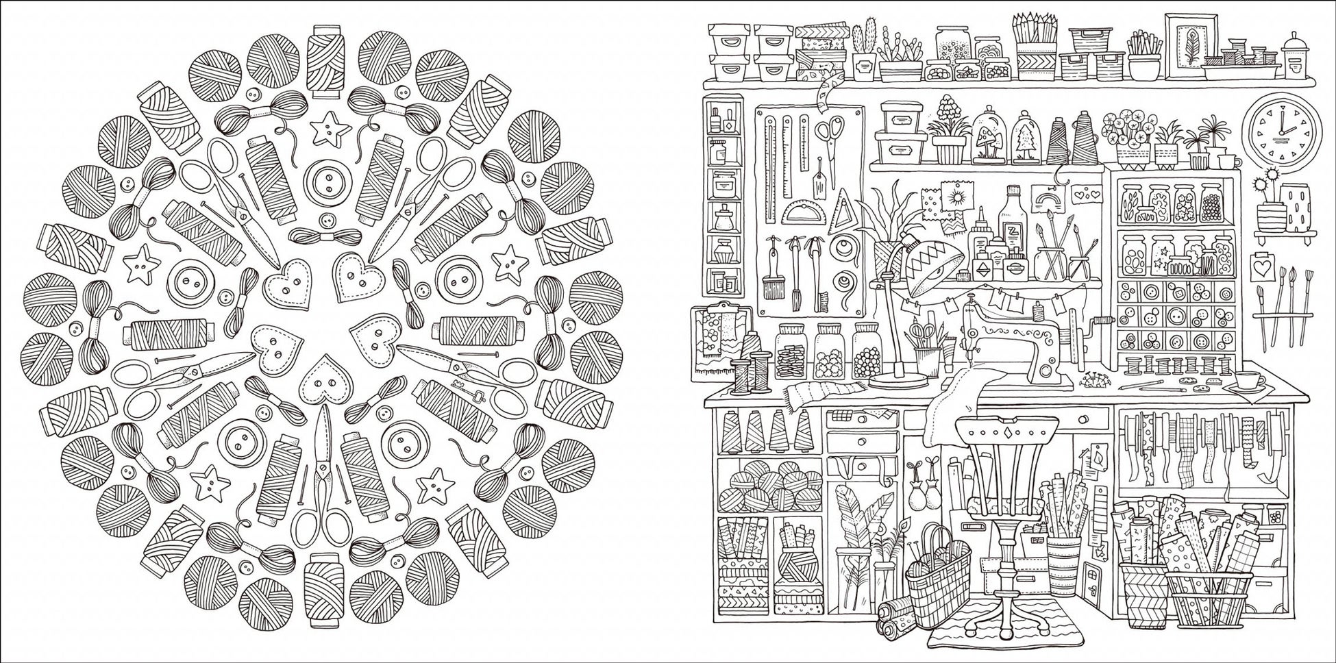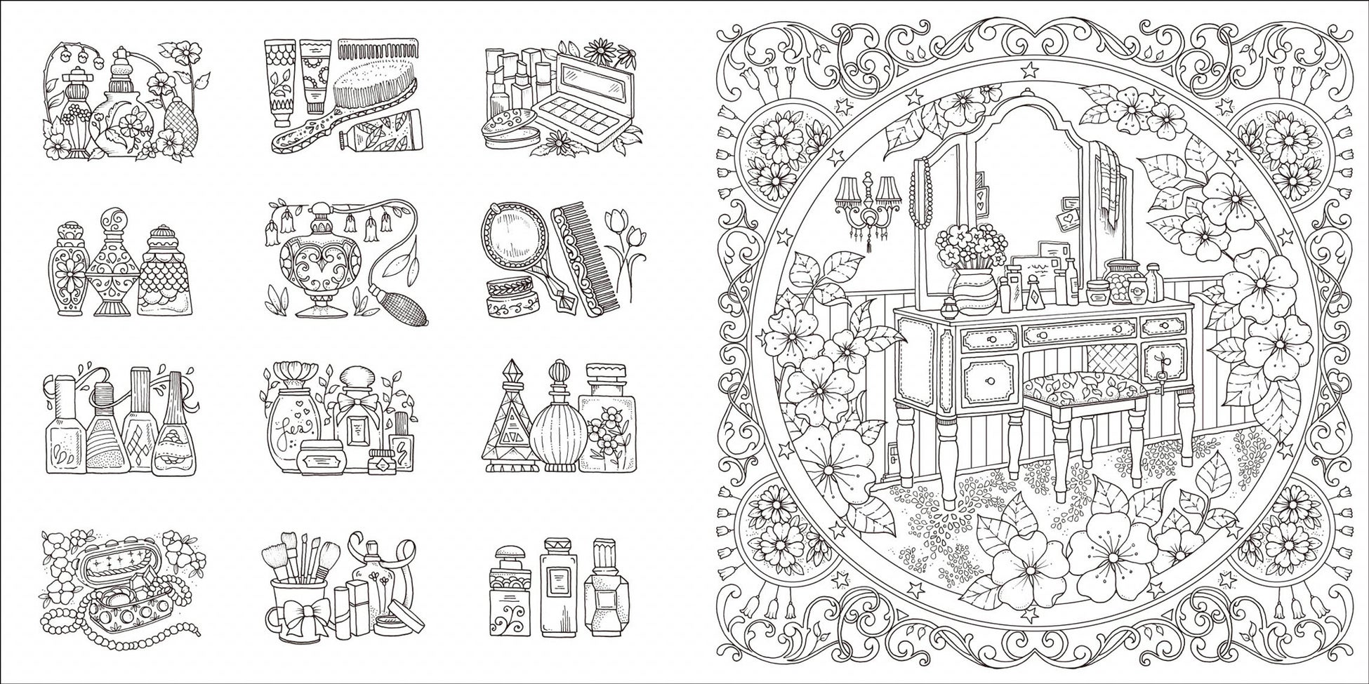 『ひみつの花園』を筆頭に、大人向けコロリアージュ(ぬりえ)本を手掛ける、ベストセラー塗り絵アーティストのジョハンナ・バスフォード。最新作には、いろいろな趣向が凝らされたユニークな部屋や、可愛いインテリアや雑貨がたくさん登場します。