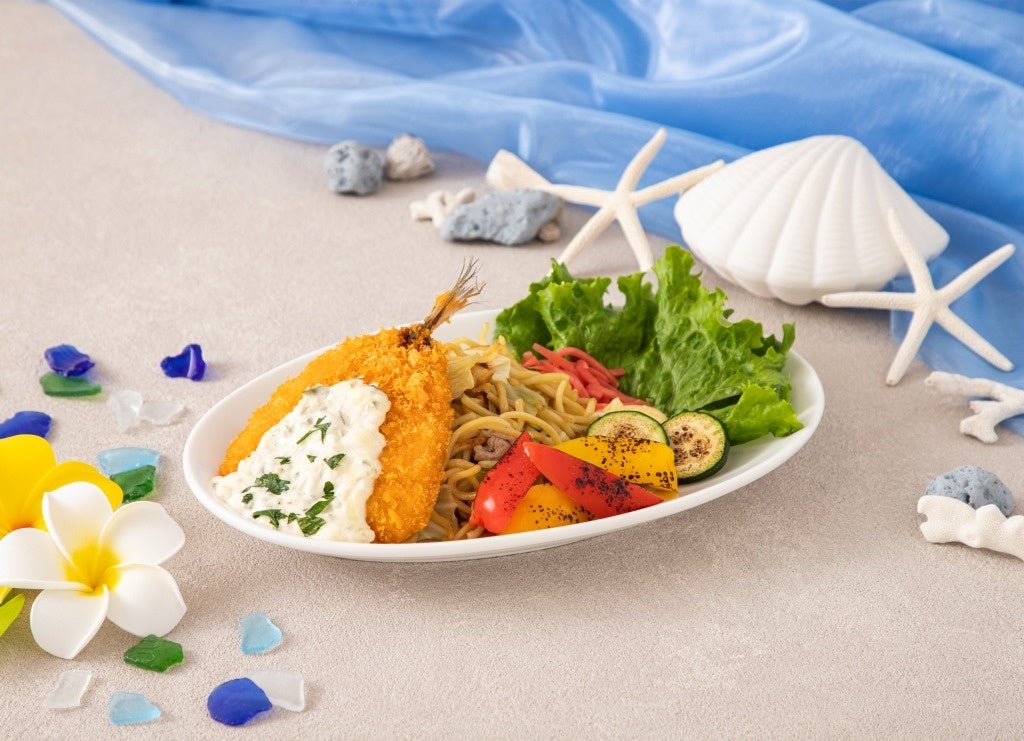 ※写真は焼きそばに「テンションあっがるぅー!!魚のフライ!」をトッピングしたものになります。