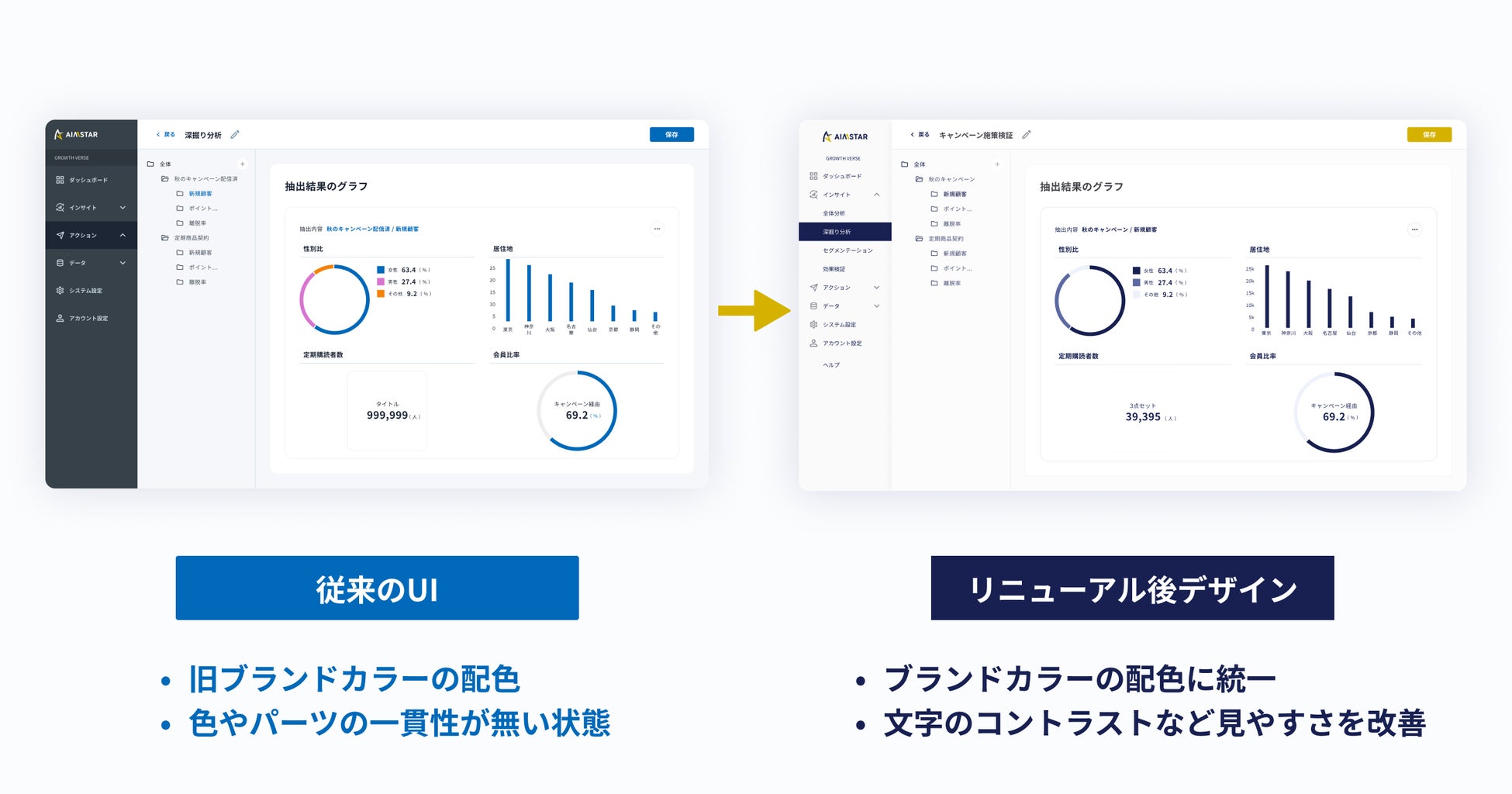 株式会社GROWTH VERSEは、スプリームシステム株式会社から社名を改め、ブランドも再構築いたしました。それに伴いマーケティングAI SaaS「AIMSTAR」のUIデザインの全面的な刷新を進めて参りました。新デザインでは、ブランドカラーを統一し、操作性と視認性を見直すことでユーザビリティを大幅に改善しています。