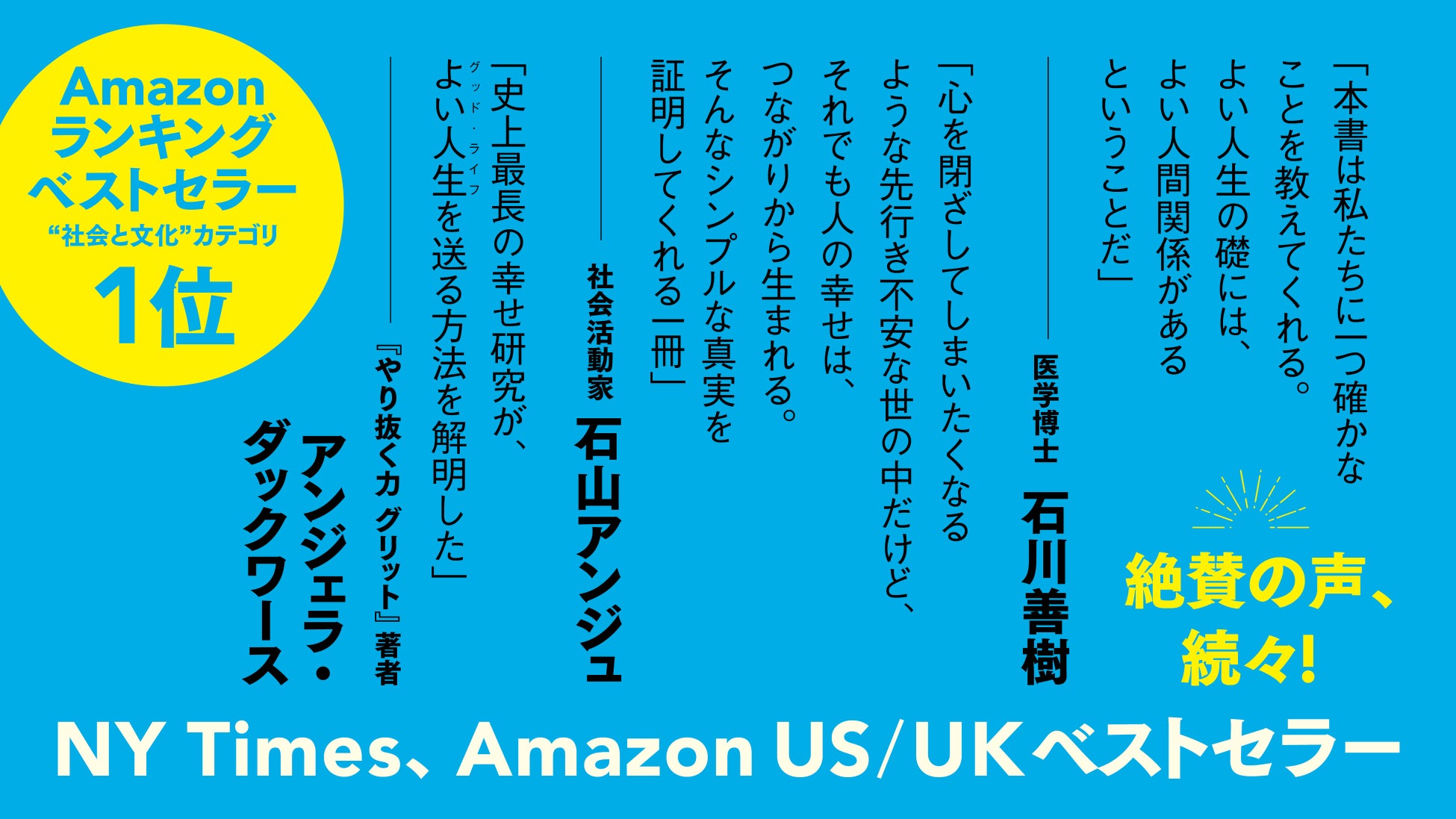 Amazonの3カテゴリでベストセラー1位を獲得した、ハーバード大学の84年にわたる“幸せ研究”をもとにした注目の書『グッド・ライフ 幸せになるのに、遅すぎることはない』いよいよ全国書店にて発売開始!