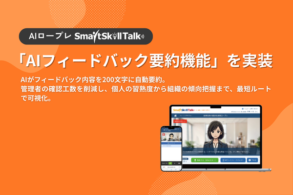 【新機能リリース】AIロープレ「SmartSkill Talk」、管理者の確認作業を数秒に短縮する「AIフィードバック要約機能」を実装