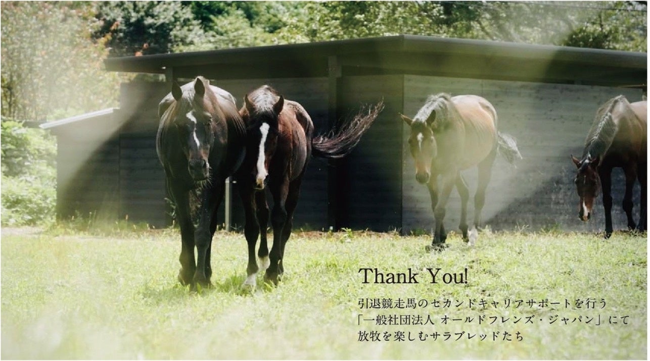 本チャリティオークションで得た収益金(※2)は、国内における現役を引退した競走馬の安全かつ安定的な飼育環境の確保および、再調教や飼育管理技術の普及など競走引退時の支援に向け、引退競走馬のセカンドキャリアサポートを行う「一般社団法人 オールド・フレンズ・ジャパン」(所在地:岡山県真庭市 代表者:代表理事 原田喜市)に寄付されます。
