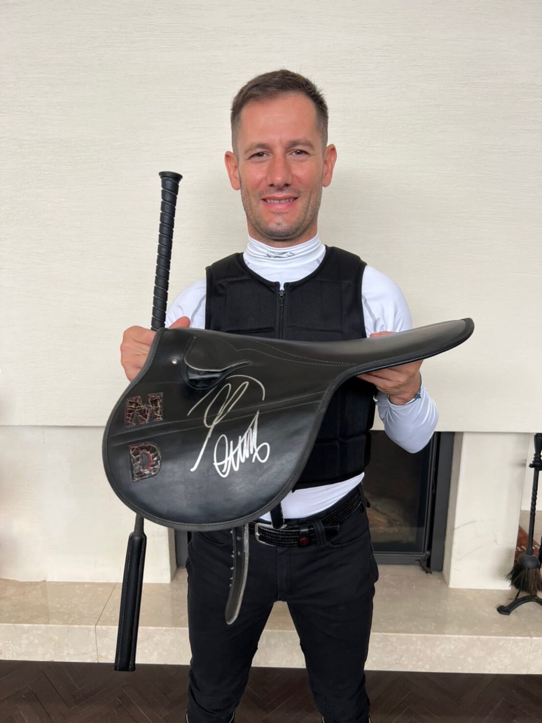 ~ ミルコ・デムーロ騎手サイン入り鞍&鞭が62万円で落札! ~