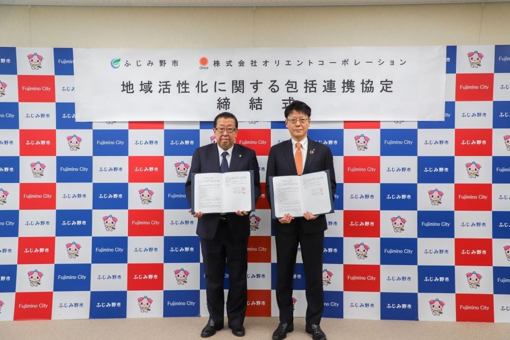 ふじみ野市と株式会社オリエントコーポレーションは、相互の連携を強化し、市民サービスの向上および地域活性化に資するため、障がい者支援、高齢者支援、子育て支援、地域福祉、スポーツ振興、観光振興などの多岐にわたる分野での連携協力に関する包括連携協定を締結しました。