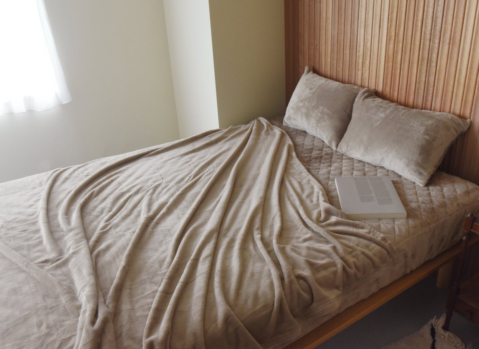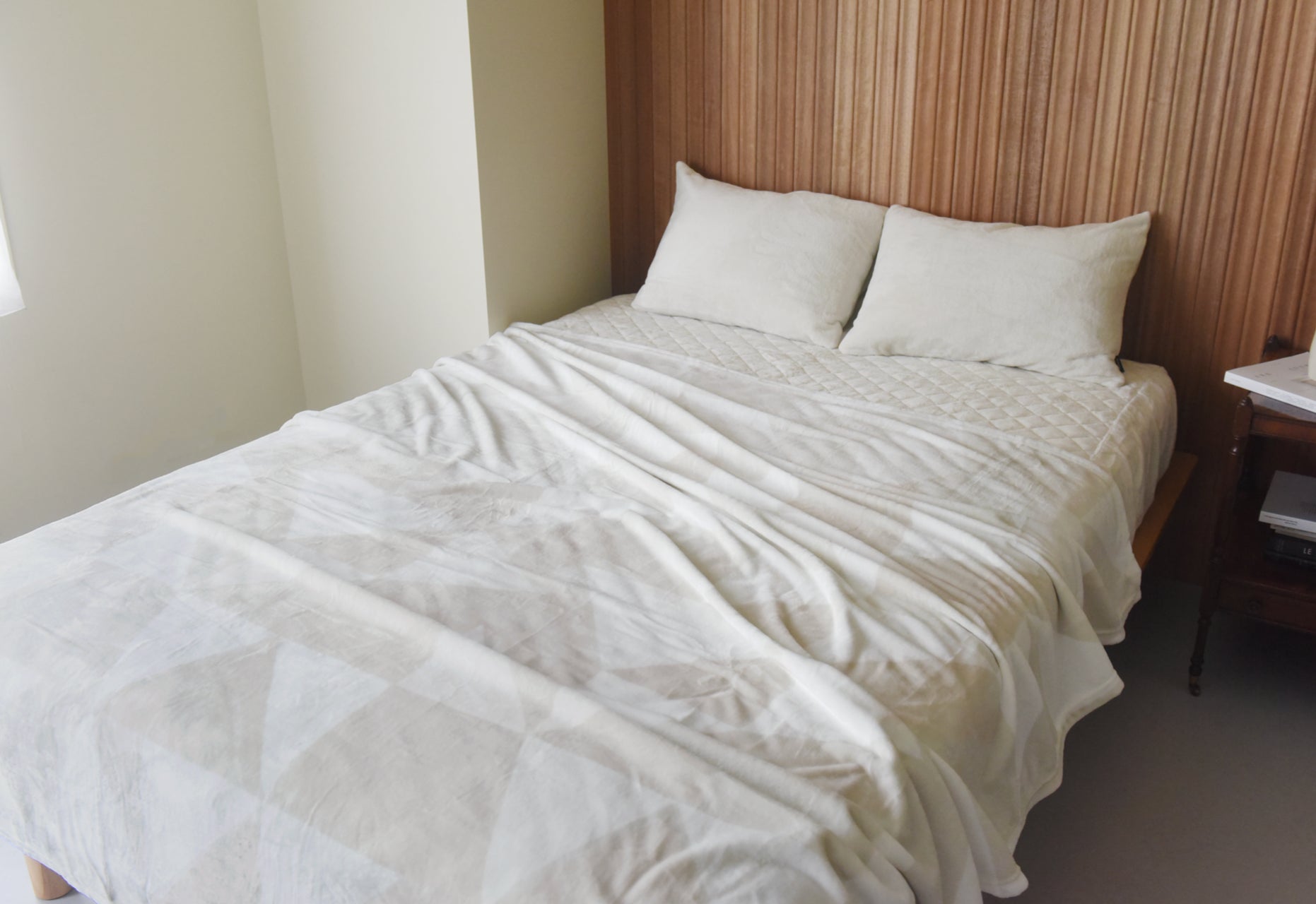 昔ながらの毛布と比べると薄手でも、体温を逃さず温もりをキープしてくれます。