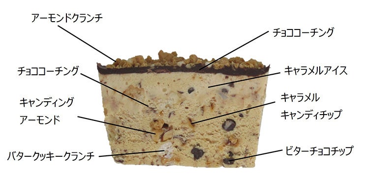N.Y.C.SANDのこだわりを反映したキャラメルアイスの中には、「キャンディングアーモンド・チョコチップ・キャラメルキャンディチップ・バタークッキークランチ・チョココーチング」の5種類を配合。口に運ぶたび、5種の素材が重なり合って濃密で香ばしいハーモニーが生まれ、ザクサクパリッと多様な食感が心地よく響きます。