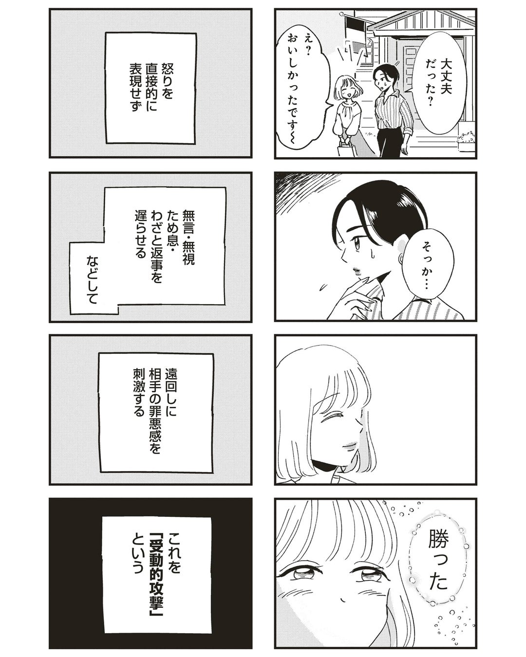 暴力・暴言などのわかりやすい攻撃とは違い、無言や無視、ため息、わざと返事を遅らせるなどして遠回しに相手の罪悪感を刺激し攻撃することを「受動的攻撃」といいます。