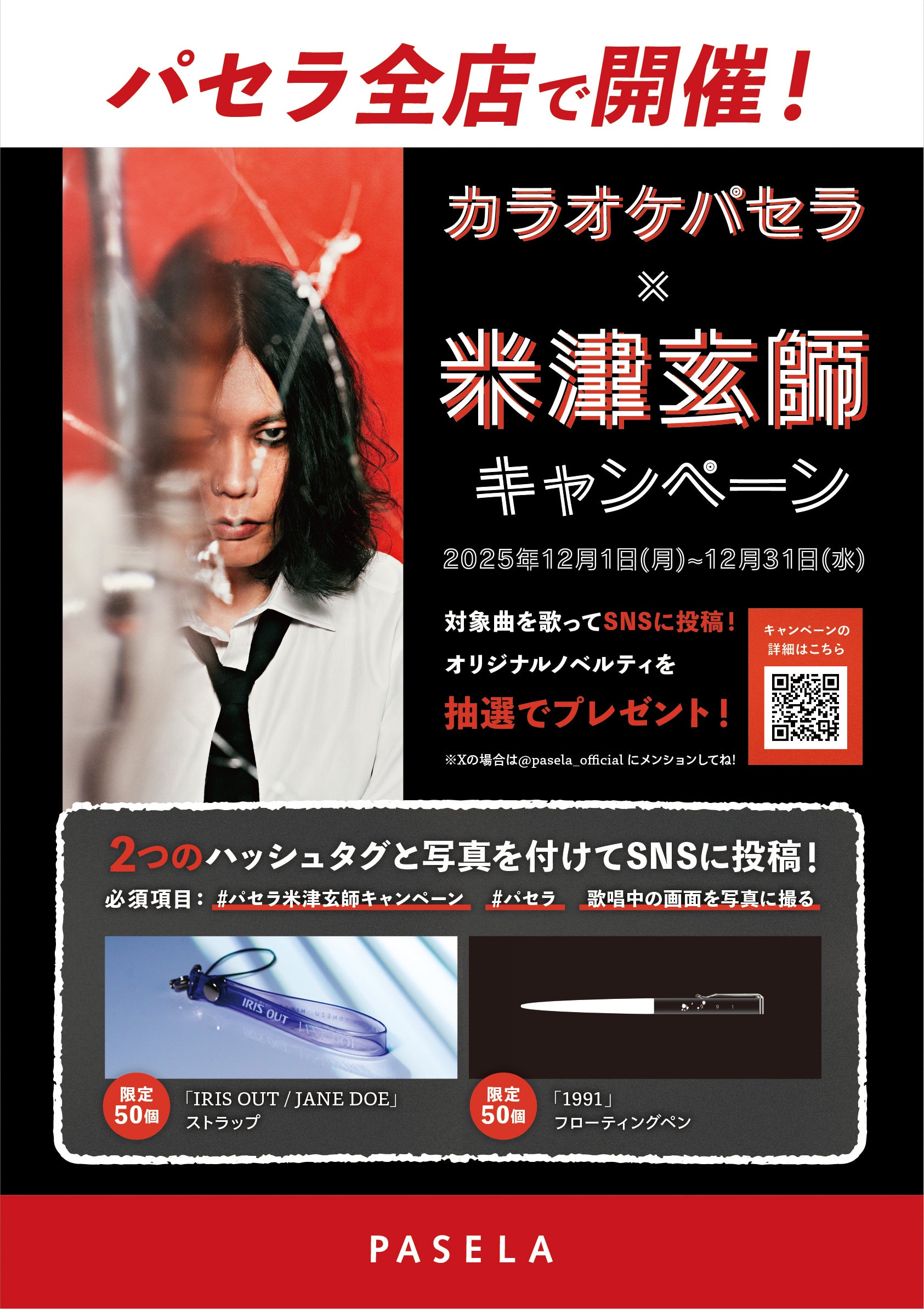 ・対象楽曲を歌唱中の画面を撮影して ハッシュタグ『#パセラ米津玄師キャンペーン』『#パセラ』を付けて投稿してください。(Instagram or X)