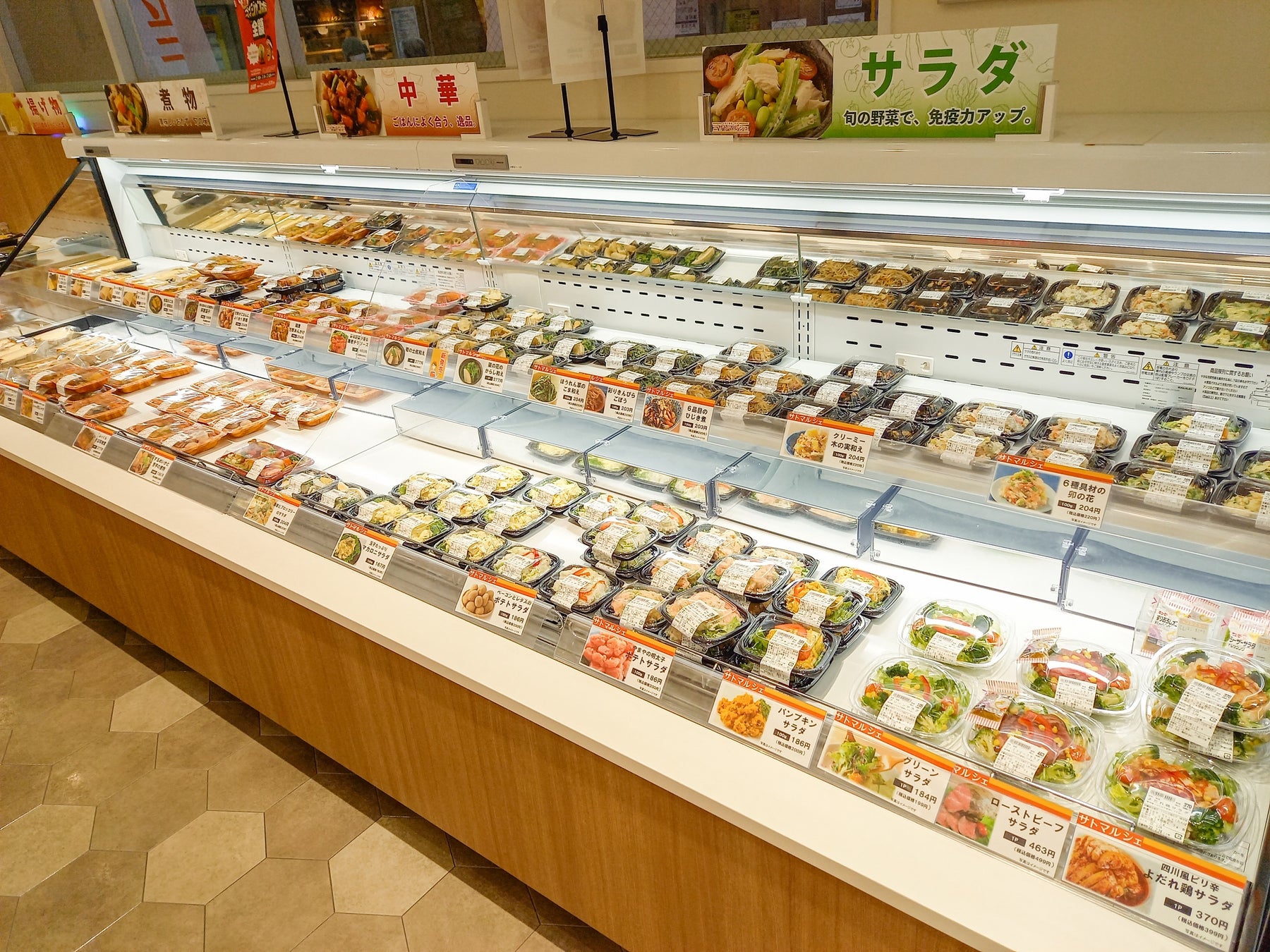 お惣菜・お弁当と一緒に買うと便利な飲料、お酒、インスタント食品、サンドウィッチ、ホットスナック、スイーツなども販売しており、お食事に必要なお買い物が一度で済むお店です。また旬の素材を活かした季節を感じられるよう、年に6回メニュー変更し、筍ごはん、松茸ごはん、蟹ごはんなど季節のごはんをお楽しみいただけます。
