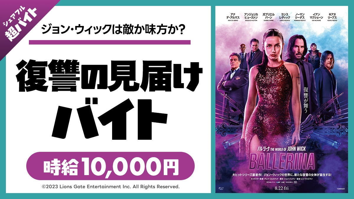 「はたらいて、笑おう。」をビジョンに掲げるパーソルグループのスキマバイトアプリ『シェアフル』やSaaSシフト管理サービス『シェアフルシフト』、就業実績を活用した人材紹介サービス『シェアフルエージェント』などを提供するシェアフル株式会社(本社:東京都港区、代表取締役社長:横井 聡)は、2025年8月7日(木)にTOHOシネマズ六本木にて行われる、映画『バレリーナ:The World of John Wick』のイベントにて復讐の見届けをする超バイトを募集します。