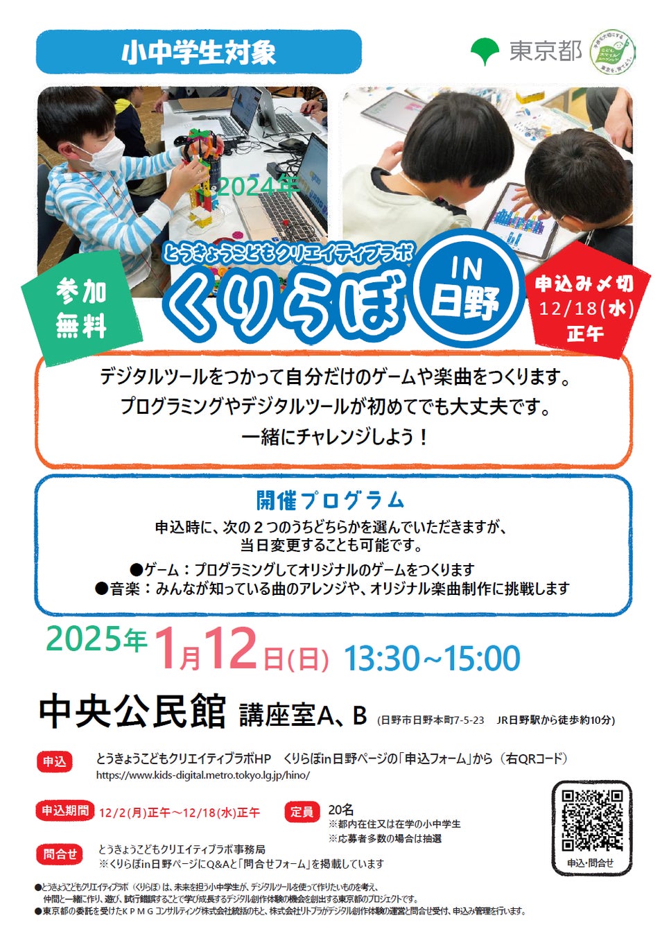 「くりらぼin日野」のホームページ内の申し込みフォームから