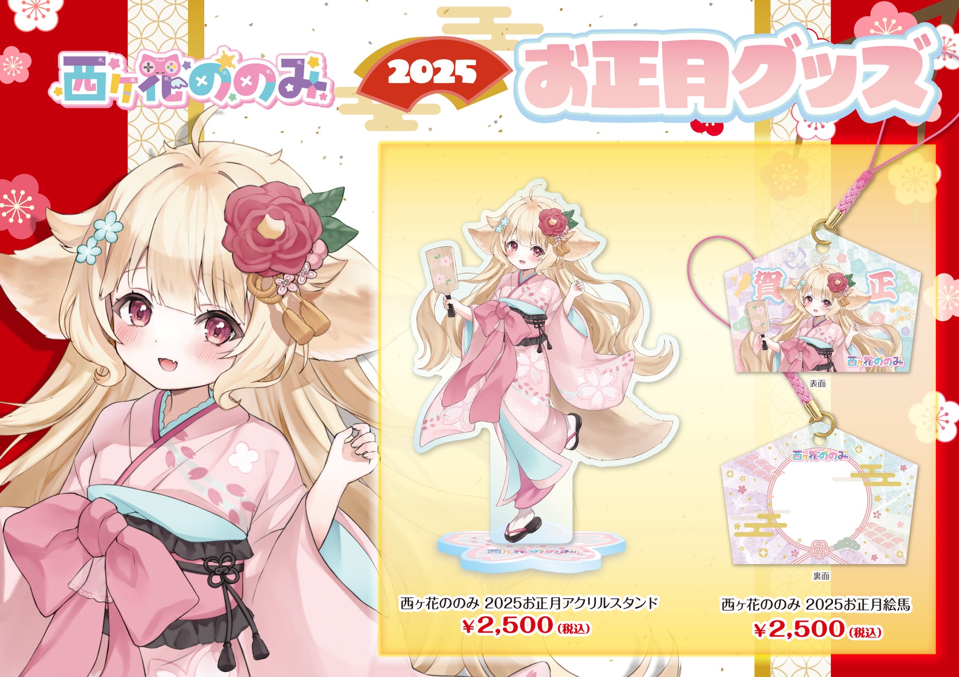 7色ボイスVtuber「西ヶ花ののみ」のオフィシャルオンラインストア『西ヶ花ののみオフィシャルストア』にて、お正月オリジナルグッズを1月1日より販売開始いたしました!