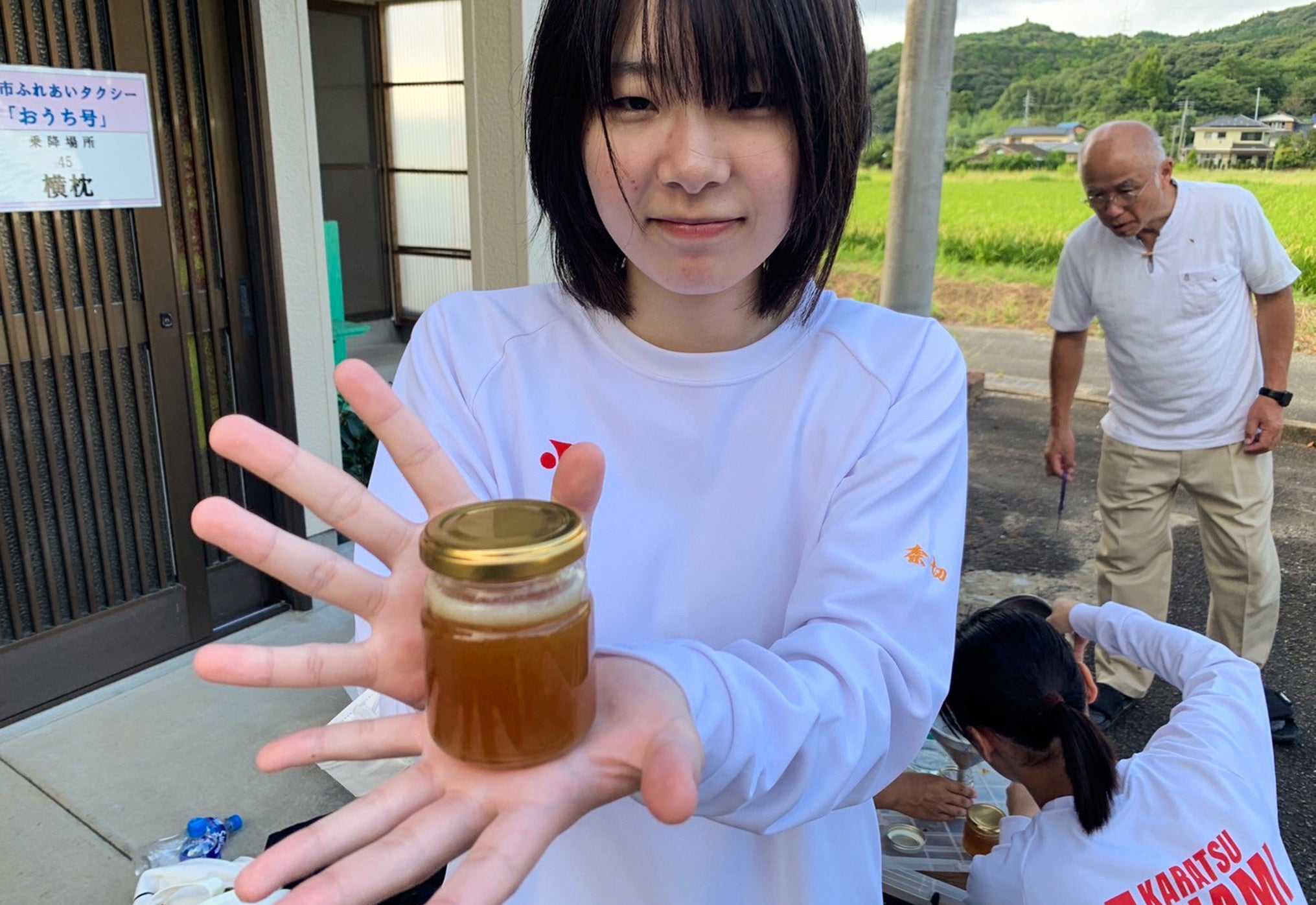 卒業生たちが丹精込めて育てたニホンミツバチのはちみつ。そのはちみつを使って後輩たちが一生懸命手作りしたのが、はちみつプリンです。地域の住民4人に食べていただいた瞬間、自然と「美味しい!」という声が上がりました。