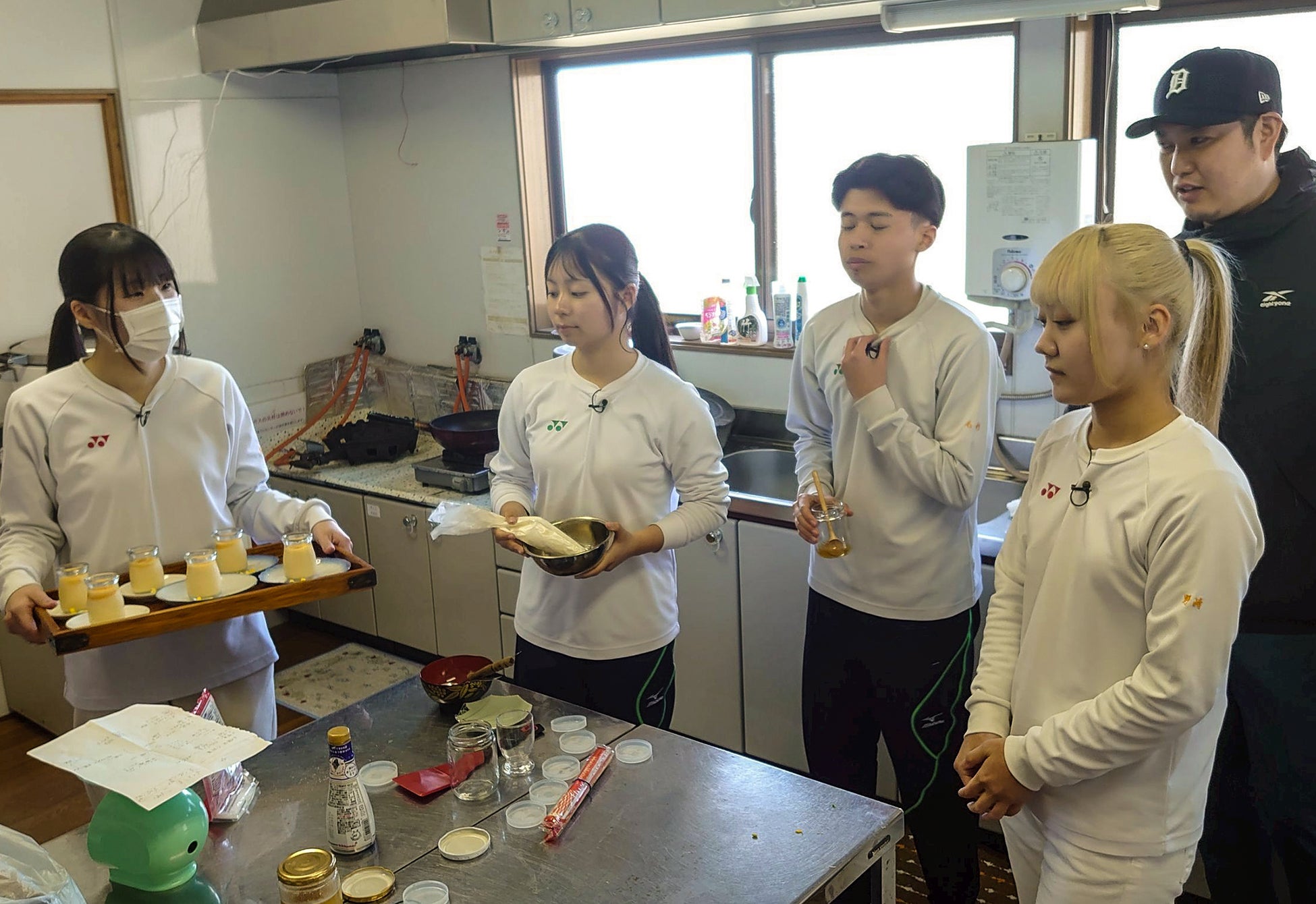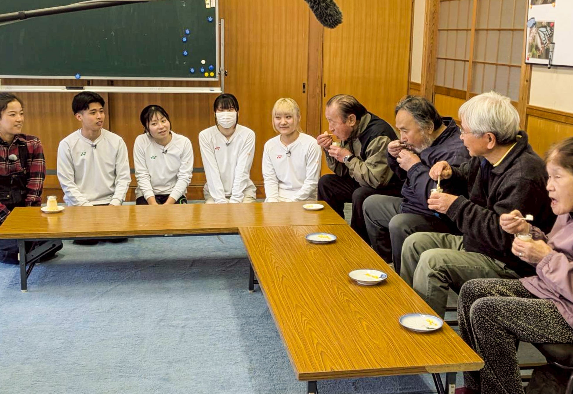 取材当日(2026年3月14日)は、今春卒業した唐津南高校の卒業生2人が後輩2人とともに佐賀県唐津市の横枕農園に集結。卒業生たちが育てたニホンミツバチのはちみつを使って後輩が手作りしたはちみつプリンを、地域の住民4人に振る舞いました。「美味しい!」と笑顔になる住民の方々の表情が、すべてを語っていました。