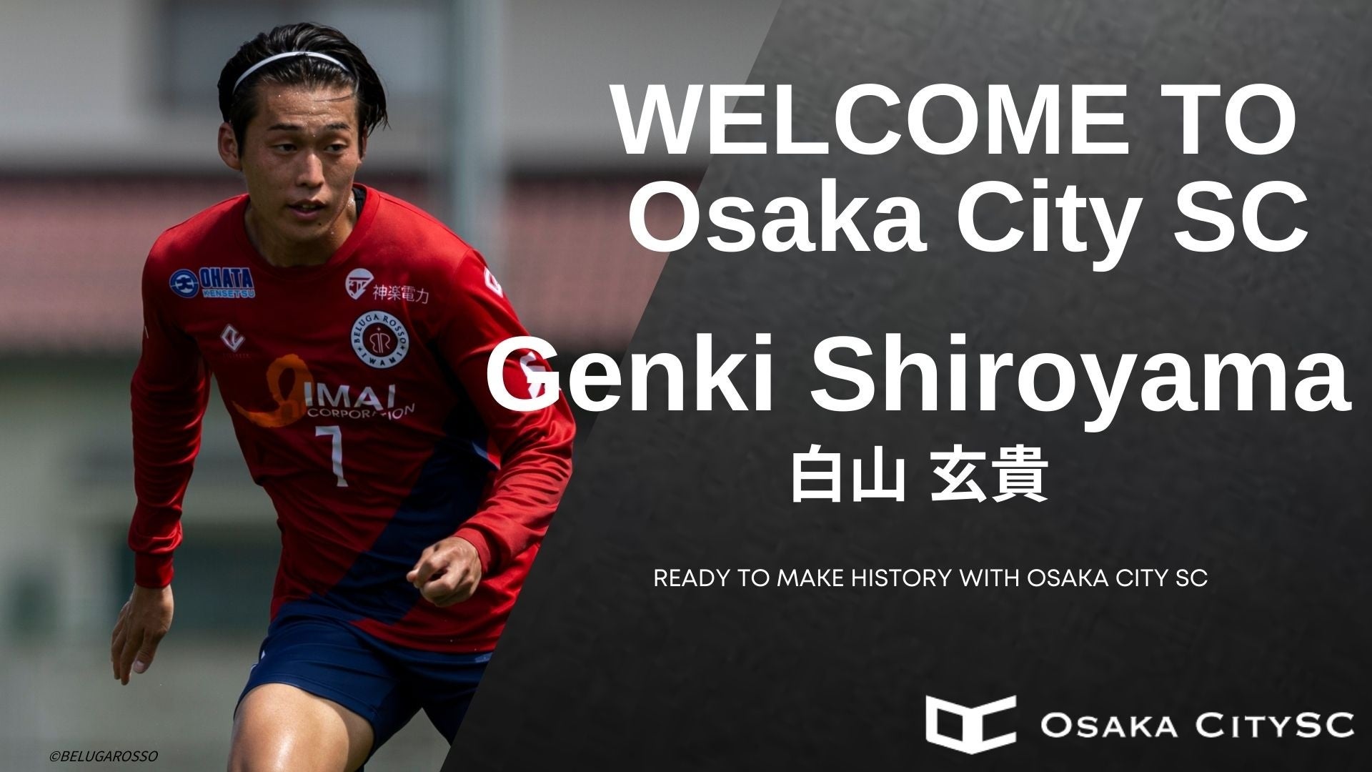 大阪市から“史上最速でのJリーグ昇格”を目指すOsaka City SCに、ベルガロッソいわみから白山 玄貴選手 加入決定!