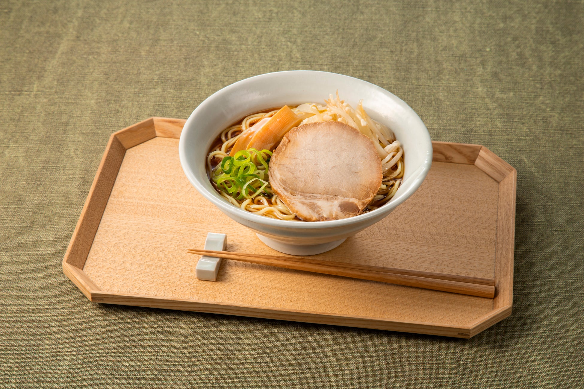 十勝清水にんにくを使用して炒めたにんにくの風味豊かなもやし炒めと、深みのある醤油スープが特長のラーメン。