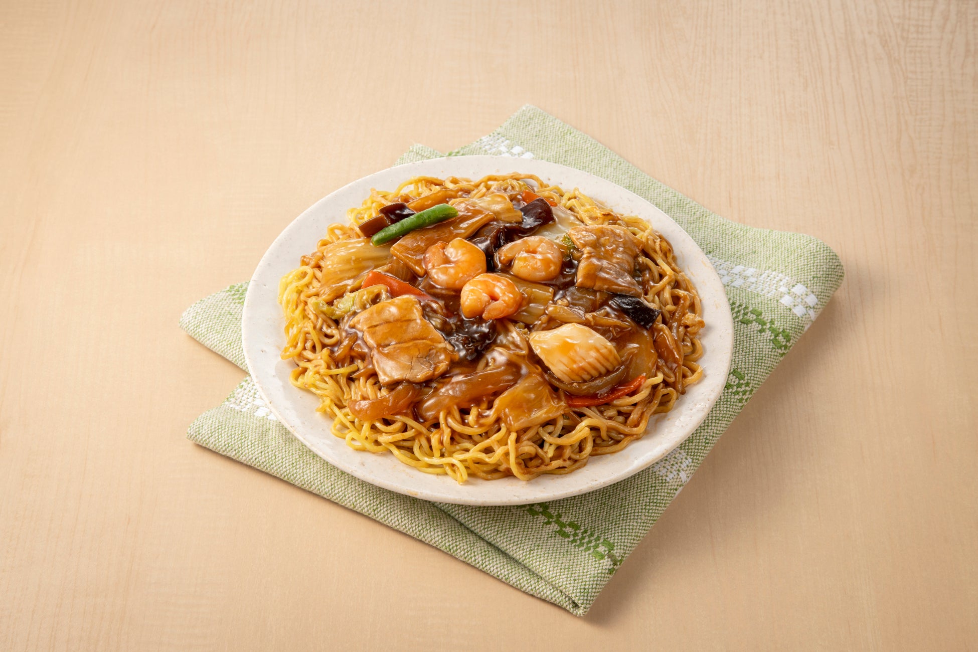 香ばしく炒めた麺に野菜のコクと旨み、具材感のあるあんかけをたっぷりと盛り付けたあんかけ焼そばです。