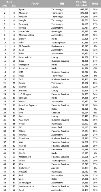 インターブランド「Best Global Brands 2022」レポート「ブランド価値」によるグローバル・ブランドランキングTOP100を発表