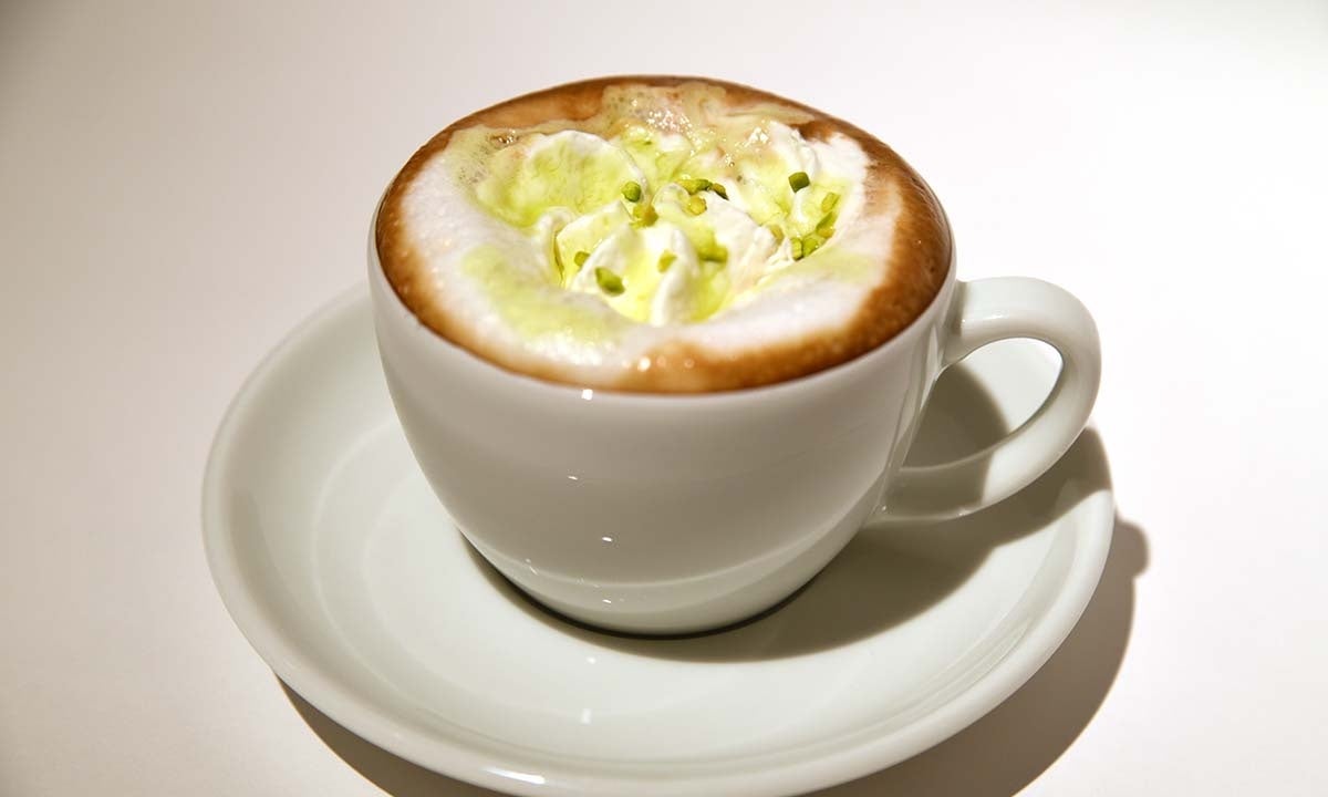 寒い冬にぴったりなドリンクが新登場しました。一番のおすすめは飲んだ瞬間ふわっとピスタチオが香る「ピスタチオモカ」。ピスタチオソースとフレーク、どちらも使うことでピスタチオの香りを存分に楽しんでもらえるようこだわっています。カフェスタッフが中心となって、デザート感覚で味わえるドリンクに仕上げました。