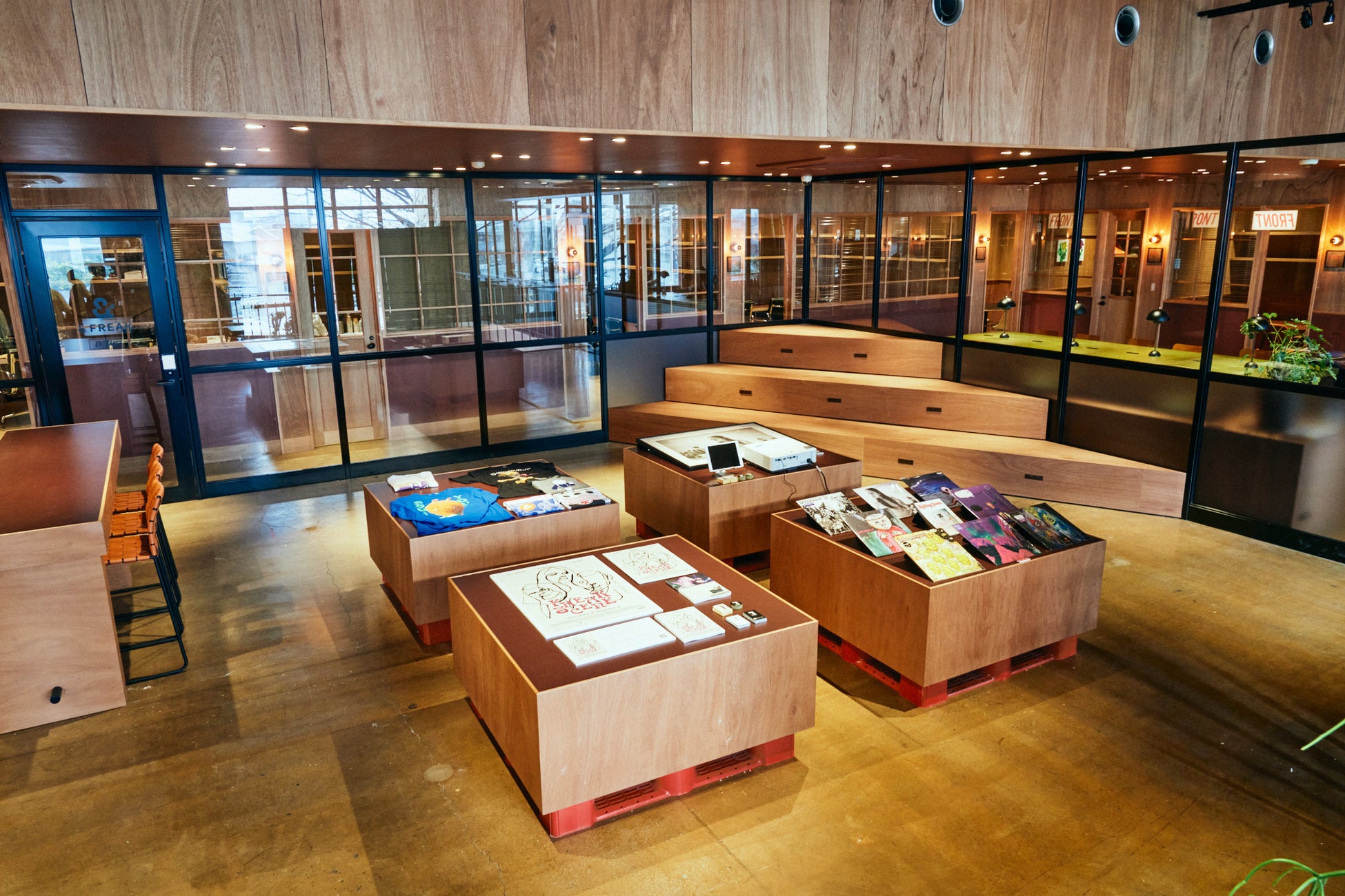 アトリエブースで手掛けた作品を60平米超えるスペースにカフェが併設された環境で展示や物販ができる。クリエイティブな空間で様々なアウトプットをその場でカタチにできることも&FREAK.の魅力のひとつ。