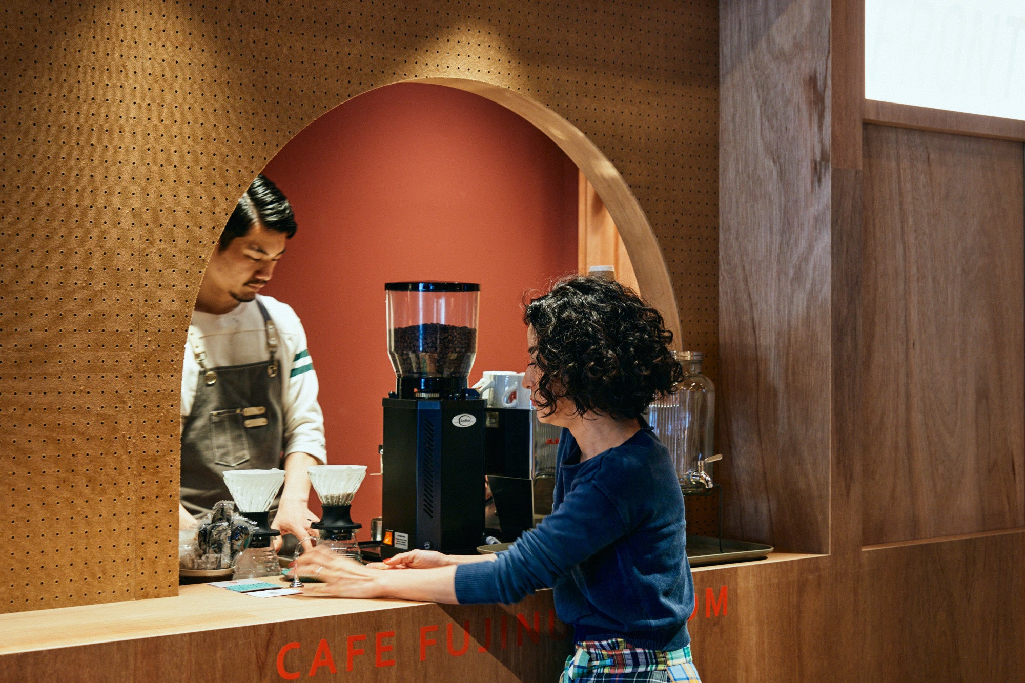 栃木県発のコーヒースタンド、Cafe FUJINUMA(カフェフジヌマ)が運営。自家焙煎のスペシャリティコーヒーは香り豊かな一杯を味わうことができる。ライフスタイルを充実するための新古本が並ぶブックコーナーは、デスクワークの気分転換や買い物ついでに寄ると新たな出会いがあるはず。