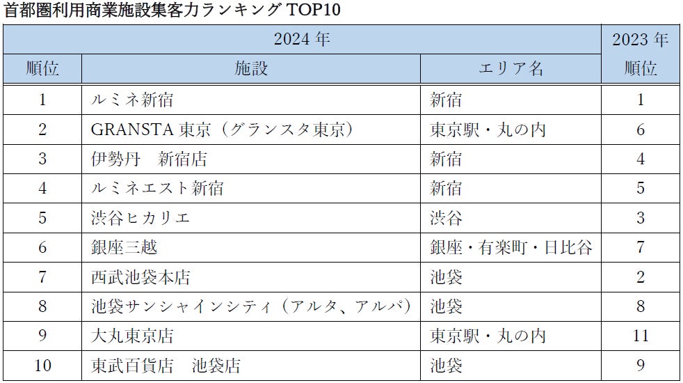 集客力ランキングも発表!ルミネ新宿が3年連続トップ