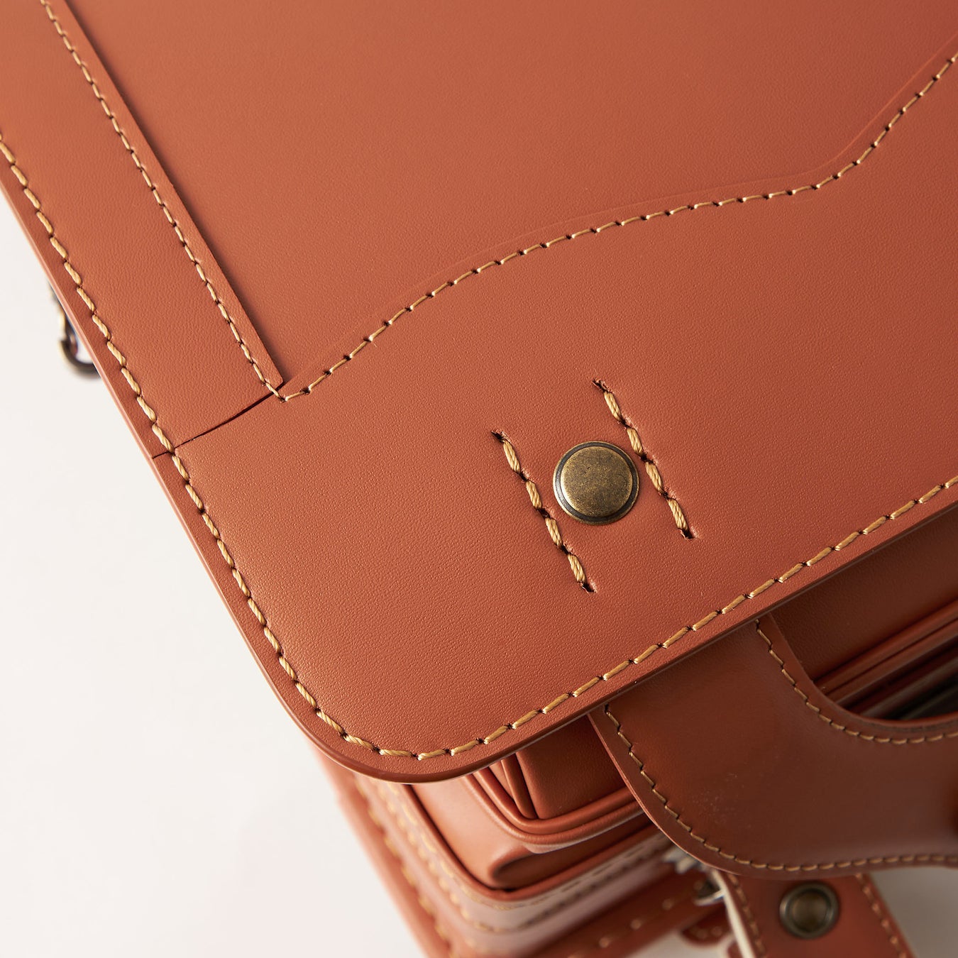 カブセ(フタ)部分のアクセントとなる鋲(びょう)は、オリジナルのデザインです。飽きのこない、かつ主張もしすぎない、ランドセルになじむよう存在感を抑えた品のある仕上がりが魅力です。