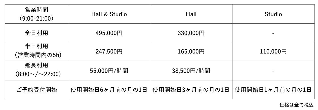 利用可能スペースにはメンバー向けに開放されている際のホール・スタジオエリアも含まれます。