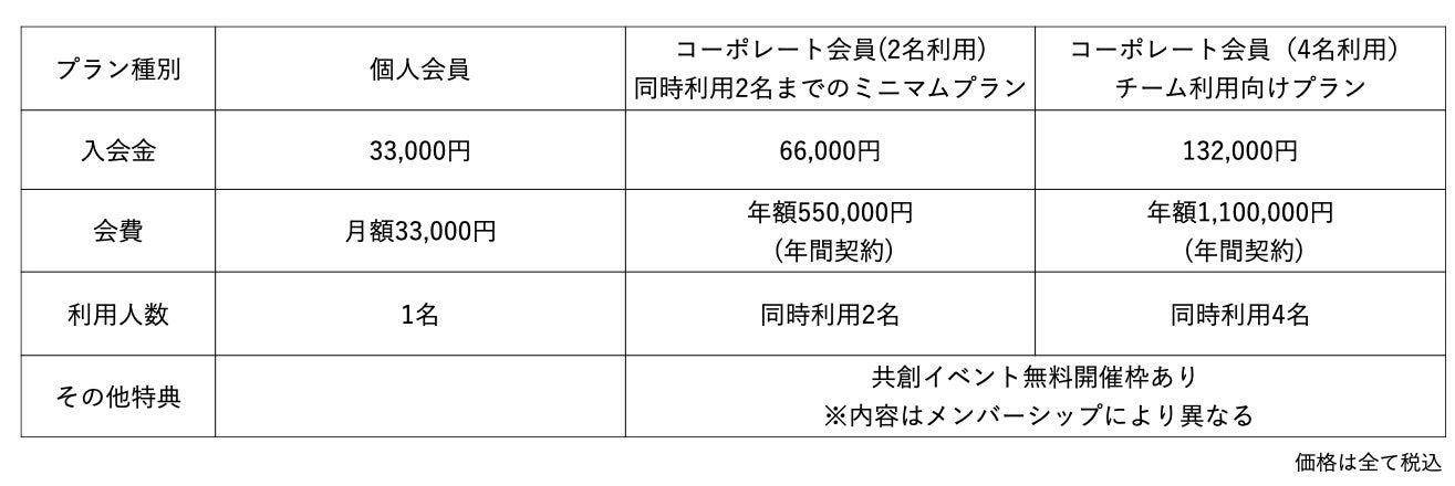 賃料月額 : 495,000円〜(税込・水道光熱費、共益費含む)入会金賃料1ヶ月分、敷金1ヶ月分