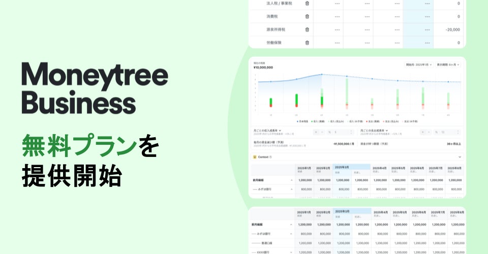 マネーツリー株式会社(本社:東京都港区、代表取締役:ポール チャップマン、以下 マネーツリー)は、中小企業・個人事業主向け財務管理ソリューション「Moneytree Business®︎」において、新たに無料プランの提供を開始したことをお知らせいたします。