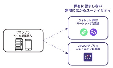 24karatのウォレットアプリである【24kZAP】をダウンロードすると、NFTホルダーのみが参加できるコミュニティや獲得できる更なるリワードに継続的にアクセスできるようになっています。