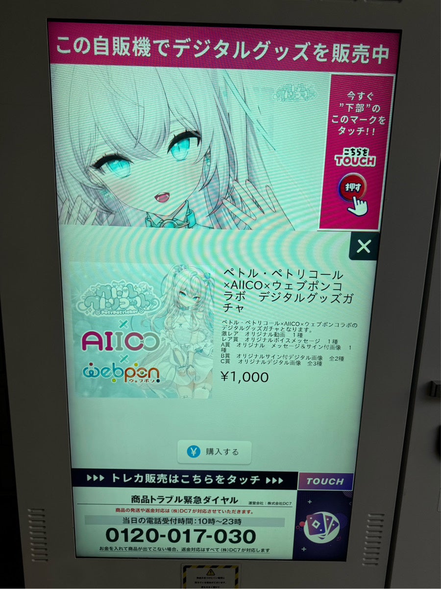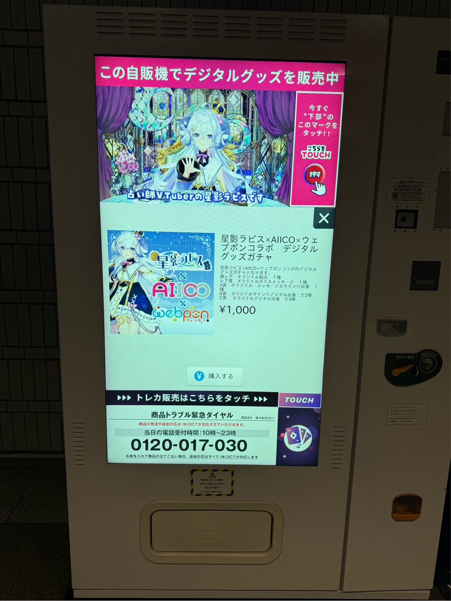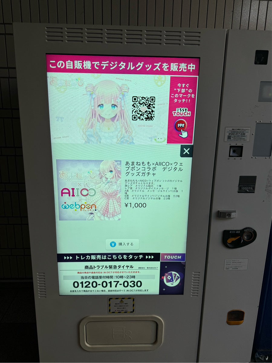 全国に約1,100台設置しているサイネージ型自販機AIICOにてVTuber『あまねもも』『ペトル・ペトリコール』『星影ラピス』×ウェブポンのコラボでのデジタルグッズの販売を開始いたしました!!