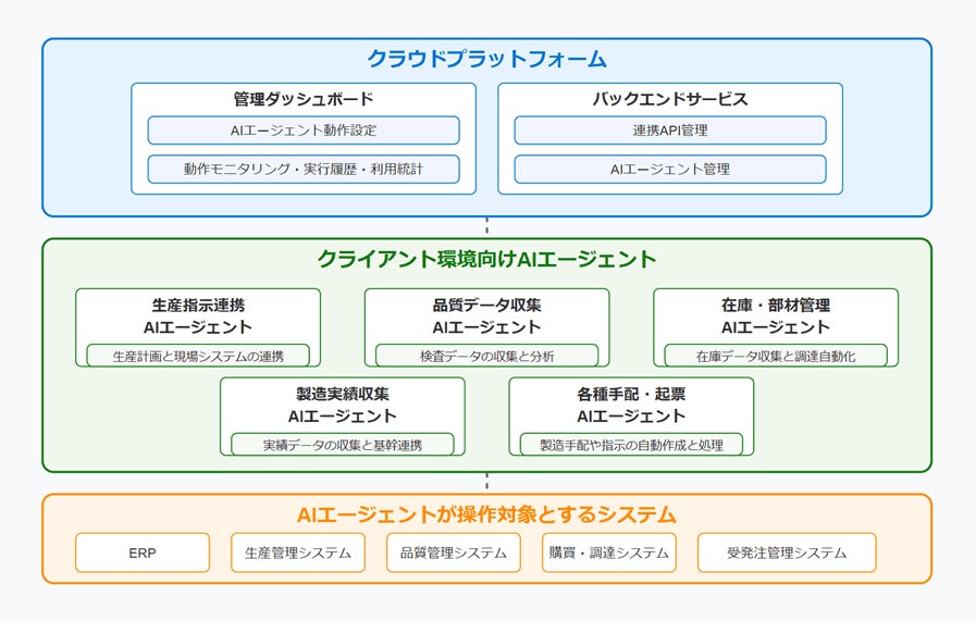 AIエージェント事業では製造業の生産性向上や競争力向上を支援するために、クライアント環境におけるAIエージェントの提供を行います。