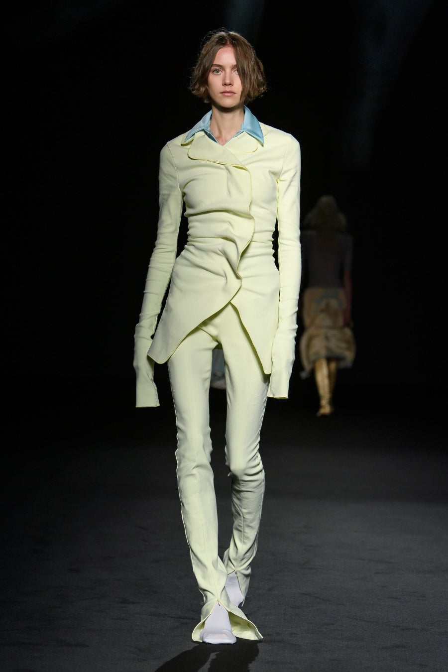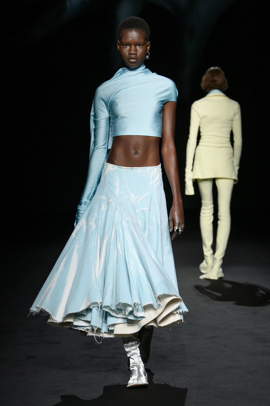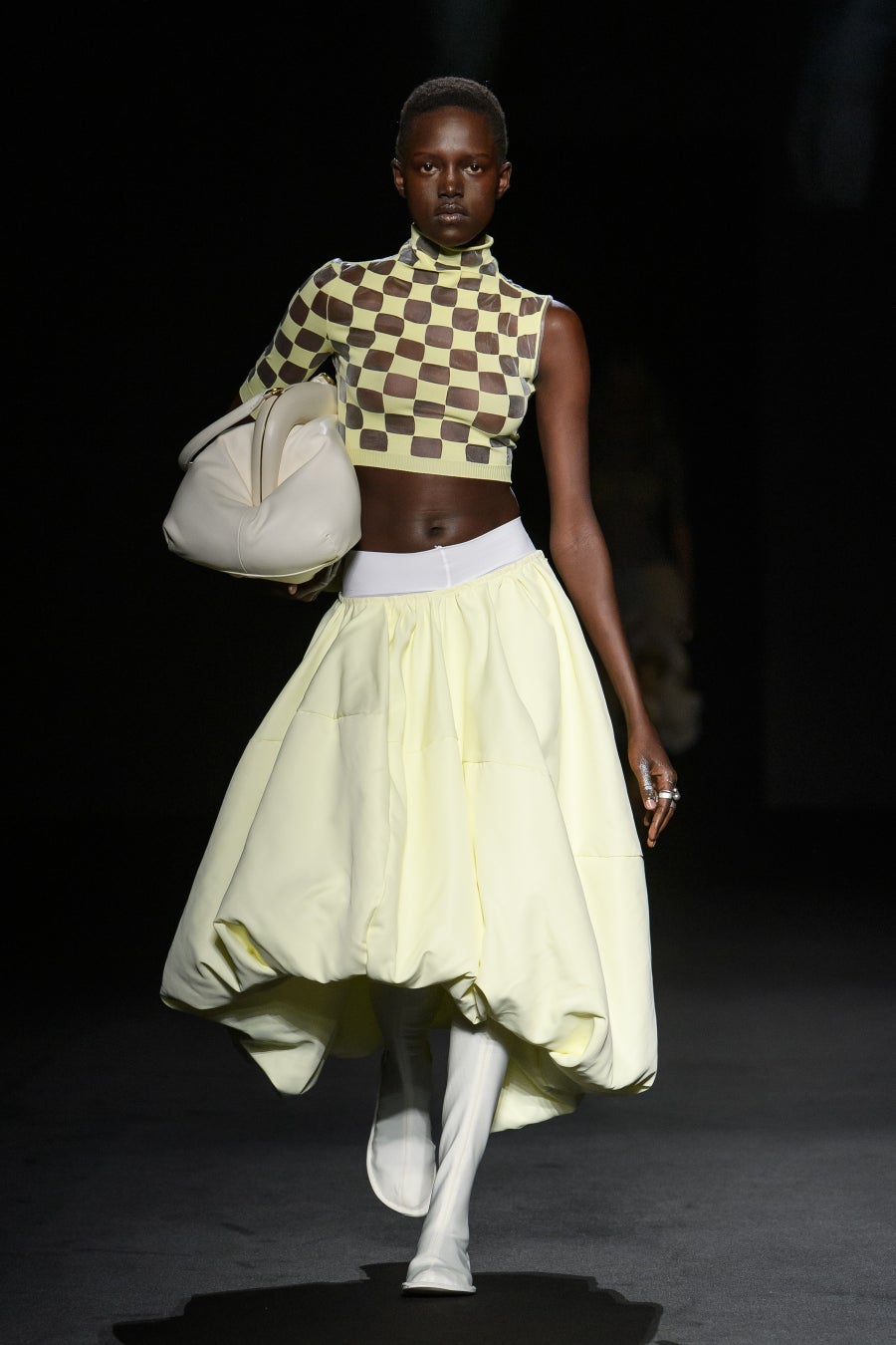 スポーツマックス2023年春夏 コレクションは「ブーバ」と「キキ」という、実際には何ら意味を持たないにも関わらず、補完し合う力を持つこれら2つの言葉の響きとともに展開されます。この二元性が伝えるのは、長い間失われていた無垢な感覚を取り戻すための練習であり、抑圧的な考えや従順性、あるいは統制された真実から