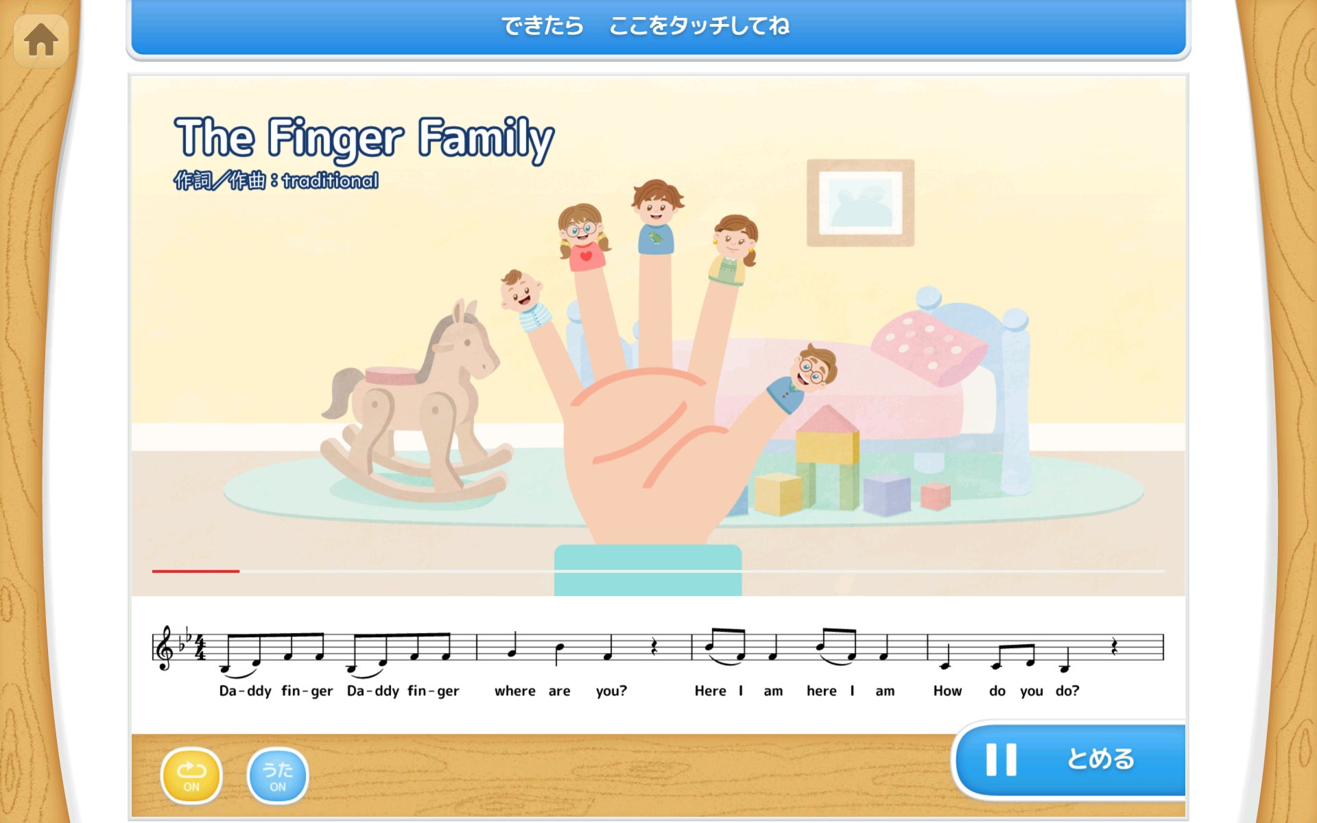 こうした「画面を超えた親子の対話」をさらに広げるべく、新たに加わる『グーチョキパー で なに つくろう』では、画面に左右の手のガイドを表示する独自の工夫を凝らしました。お手本を真似ることで、幼児期に重要な模倣の力を育みます。また、英語歌『Seven Steps』や『The Finger Family』は、ネイティブの発音とリズムに触れながら数字や家族の名称を自然にインプットできるよう設計されました。