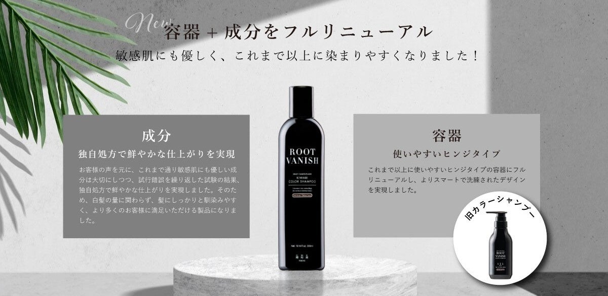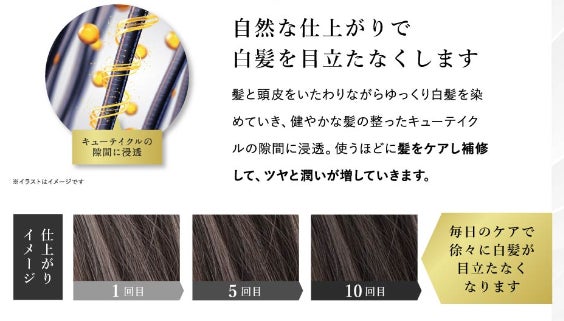 さらに容器はより使いやすく、スマートで洗練されたヒンジタイプの容器にフルリニューアルしました。髪と頭皮を最大限いたわりながら毎日シャンプーするたびにゆっくり綺麗に白髪を染めていきます。