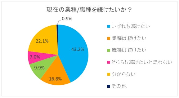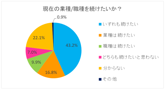 - ファッション・ビューティー業界もしくは現職種で働き続けたい、と答えた人は全体の70%