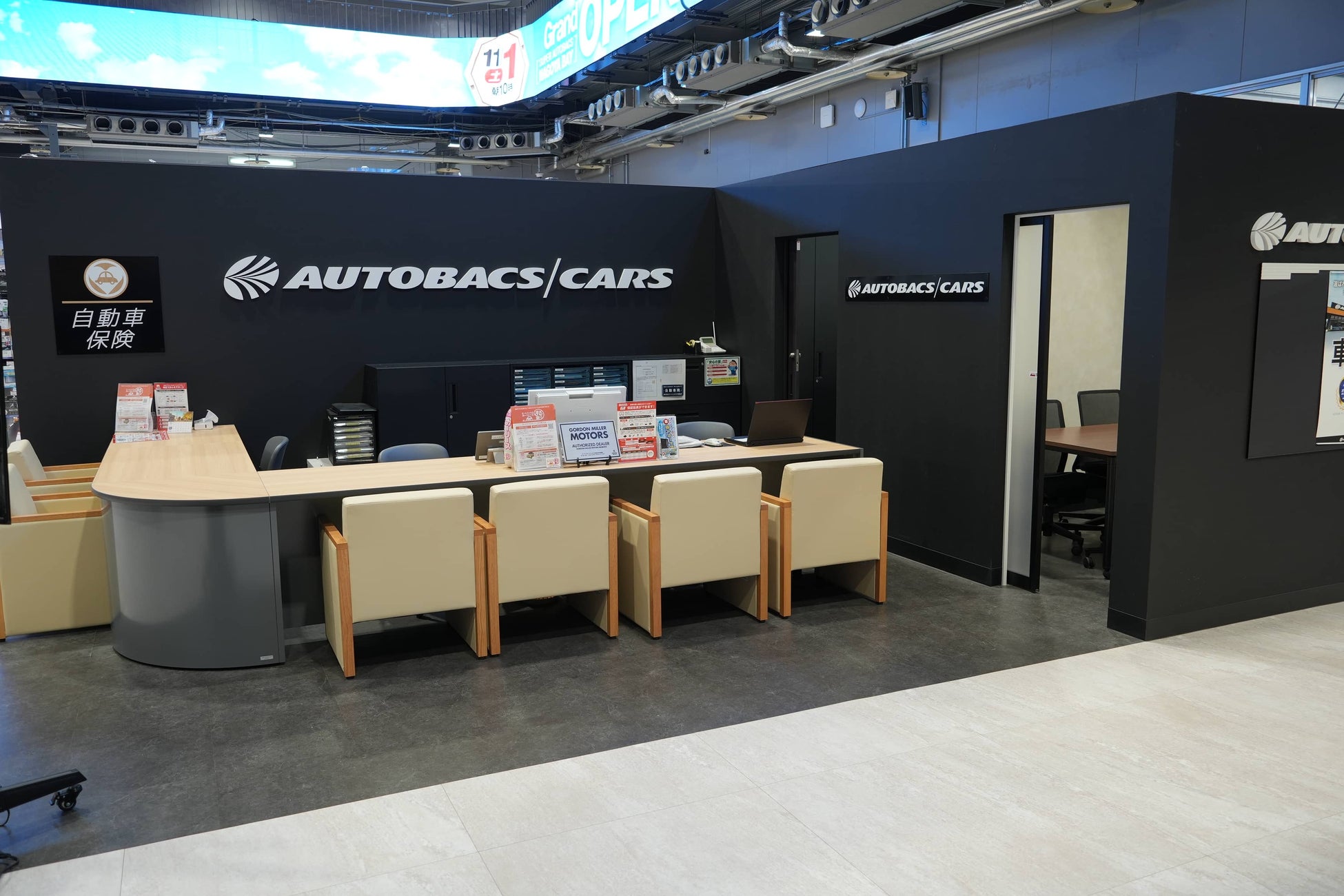 車買取・販売の「オートバックスカーズ」専用カウンターを設置し、専属スタッフが常駐。車両も約20台展示し、愛車の査定やクルマの乗り換えなどについて気軽にご相談いただけます。