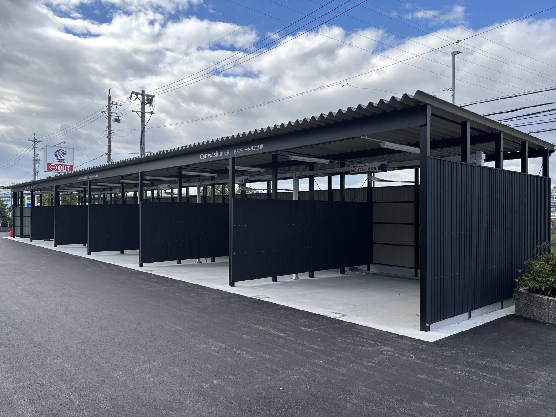 6台分のセルフ洗車場と11台の拭き上げ場、スムーズで効率的な洗車を可能にするベルトコンベア式の洗車機を設置。使用する水には水シミができにくい純水を採用し、仕上がりにこだわるお客様にも満足いただける快適で高品質な洗車体験を提供します。
