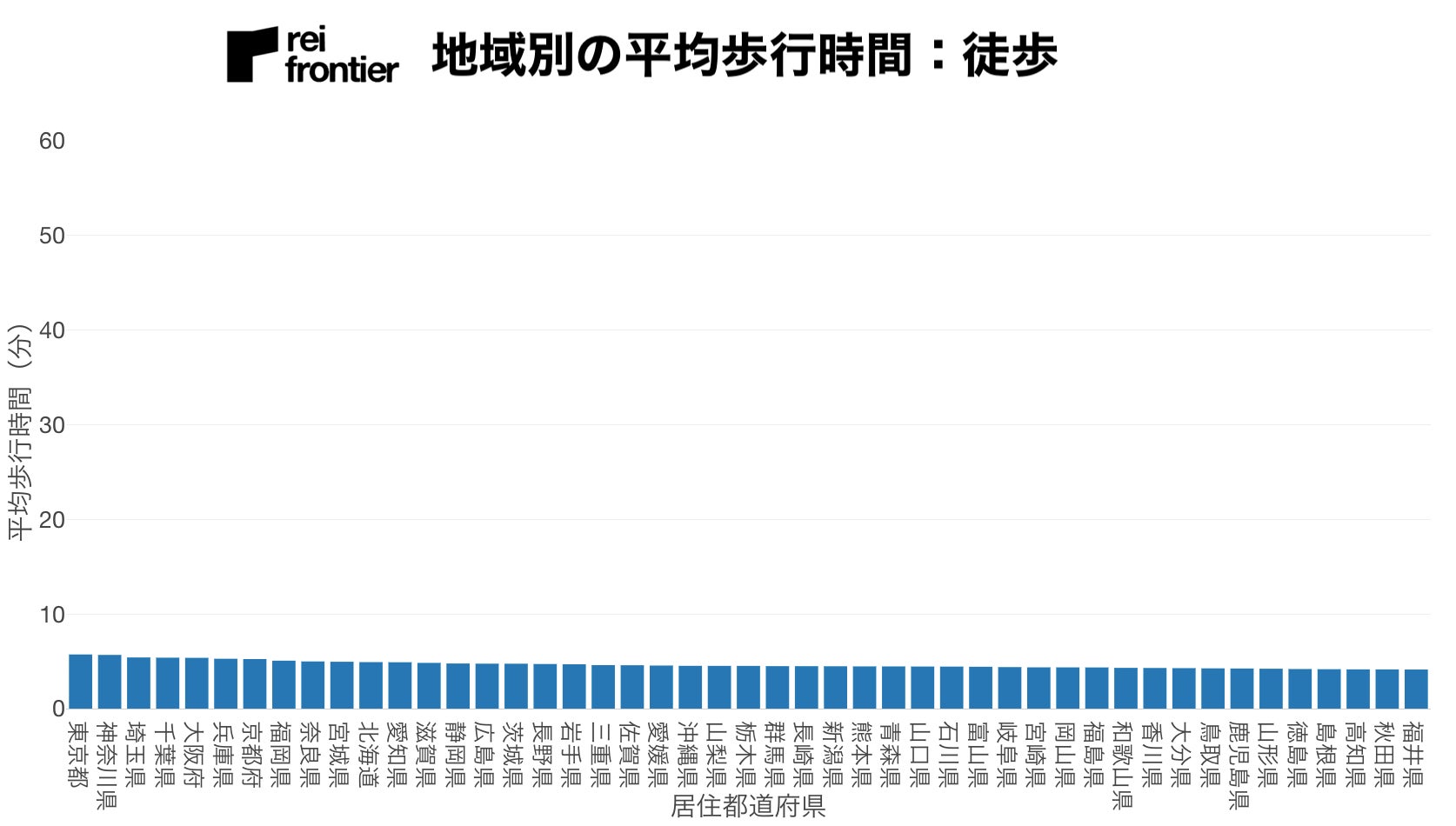 徒歩に関しては、速度・距離と同様に関東圏や 6 大都市といわれる地域の方が長い傾向を示しています。