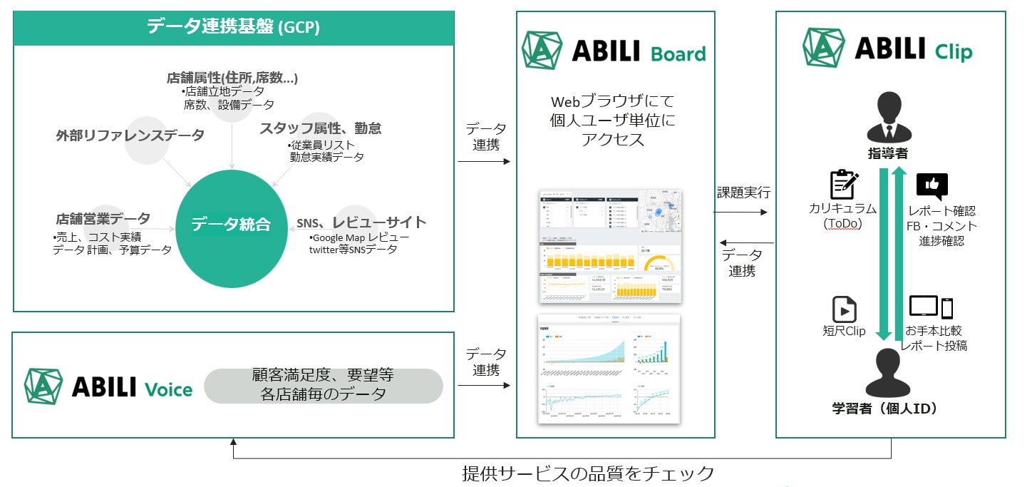 そのような状況において、多拠点ビジネスが顧客に選ばれ続ける高品質なサービス提供と、これまで以上の利益獲得を両輪で実現していく支援のためには、ClipLineのサポート範囲を大幅に拡大し、顧客の課題に徹底的に寄り添った総合的なプラットフォームの提供が不可欠であるという結論のもと、「ABILI」のリリースに至りました。