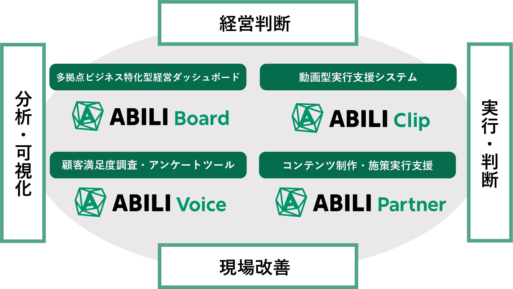 これまでClipLineではサービス業を中心とした多拠点ビジネスの「実行支援」に重きを置き、短尺の動画を活用して業界特有の課題を解消することに尽力してきました。今回、新たに「ABILI」というブランドを作ったきっかけの一つは、ClipLineを創業した当時と現在で、サービス業を取り巻く環境が変化してきたことです。多拠点ビジネスでは、いかに優れた経営戦略があっても、小さな拠点が多数点在するため、現場に素早く正確に伝達することが困難な状況があり、それを解消することが目的でした。