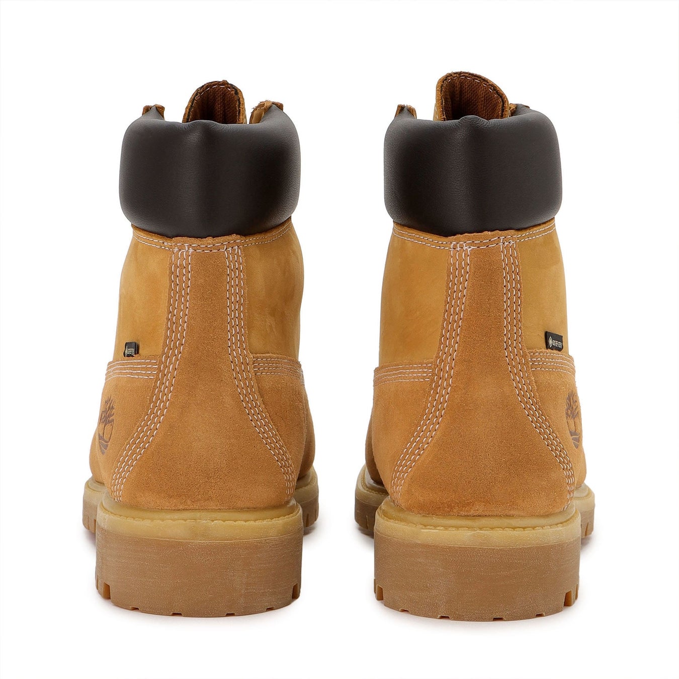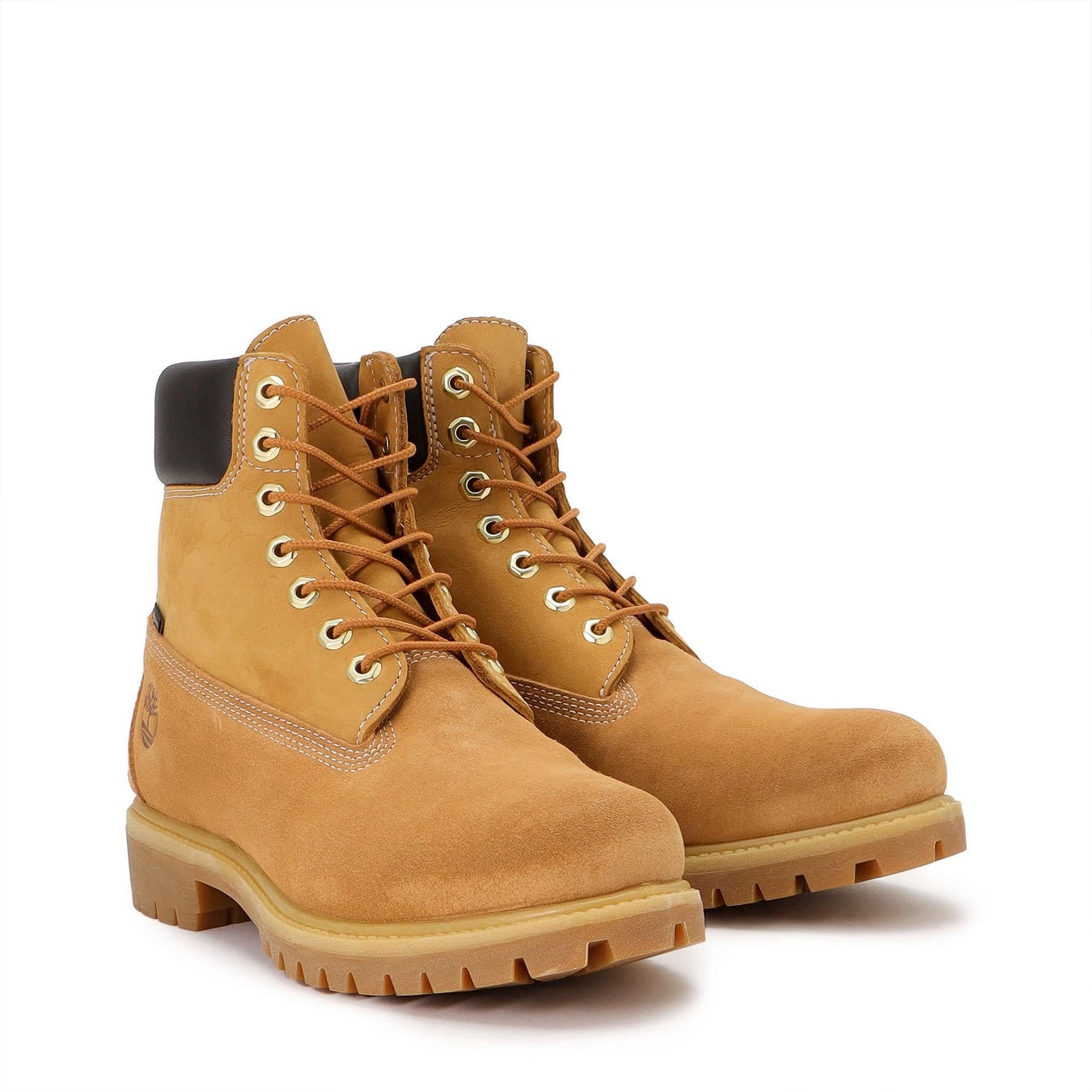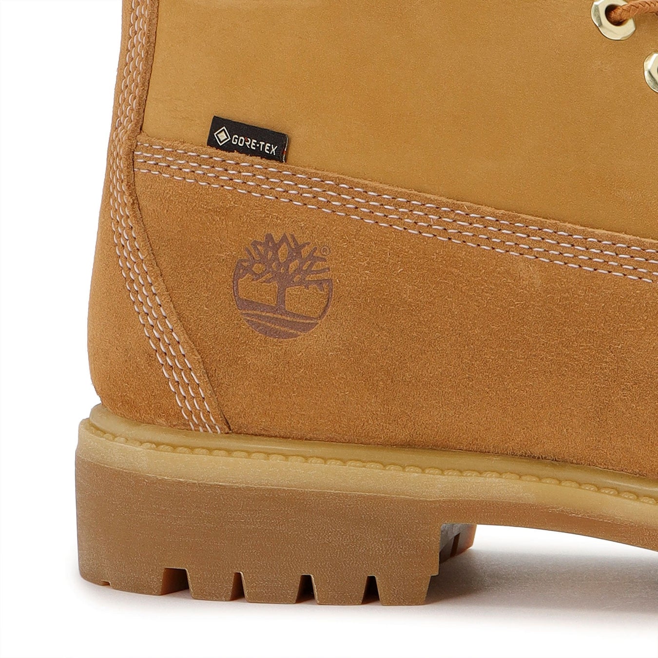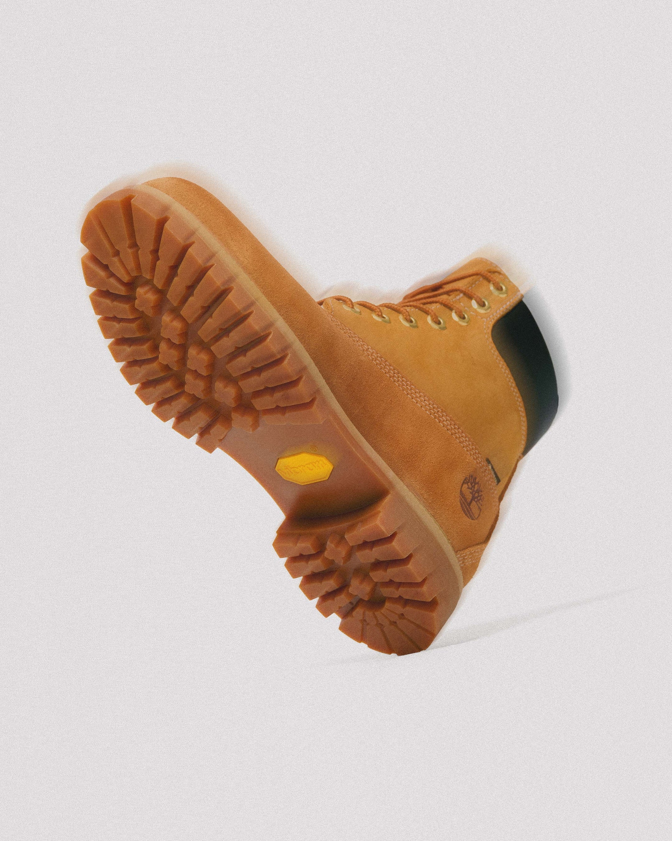 初の『ミタスニーカーズ』との別注になった今作は、「イエローブーツ」のオリジナルのシルエットやアイコニックな4ステッチはそのままに、アッパーの素材やソールをアップデートいたしました。アッパーは、上層部分にイエローのヌバックレザーを使用しながら、下層部分には同色のスエードを用いることで、濃淡の異なる素材感と色味による奥行き感を演出。さらに、防水透湿の機能素材「ゴアテックス(GORE-TEX)」を全体に搭載し、それを証明するブラックのピスネームを素材の切り返し部分にさりげなくあしらっているほか、ソールはグリップ性に優れたイタリアのビブラム(VIBRAM)社製のアウトソールを採用しているため、これからの季節に活躍するであろうアイテムに仕上がっています。そして、表側には「ティンバーランド」のロゴが、裏側には『ミタスニーカーズ』と「ウィズリミテッド」のロゴが型押しされたトリプル別注を示す限定のハングタグを制作いたしました。