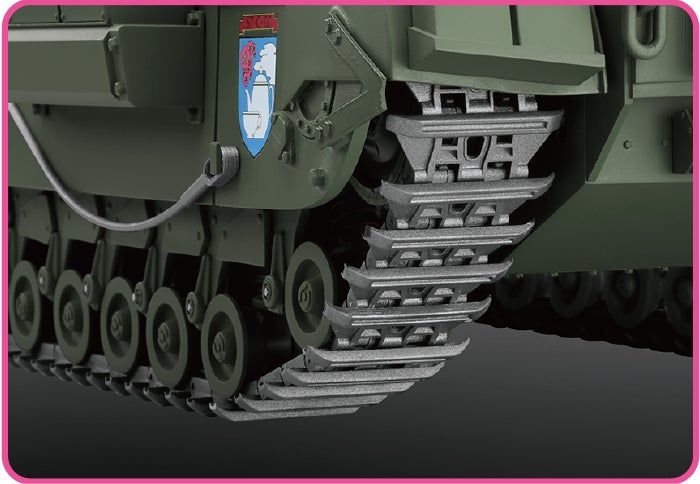 本シリーズの「Mk.Ⅳ歩兵戦車 チャーチルMk.Ⅶ」は、「Ⅳ号戦車H型(D型改)」と同様に、1/12スケール・全長61.0cmで、可動・音声・点灯の多彩なギミック、ダージリン、オレンジペコ、アッサムのオリジナルフィギュアとともに立体化しました。