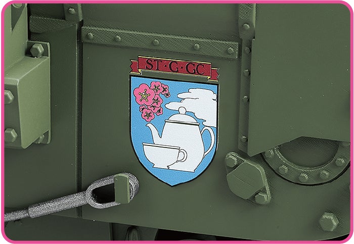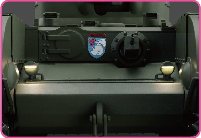 車体に描かれている聖グロリアーナ女学院の校章をアニメと同じ位置にマーキングしています。
