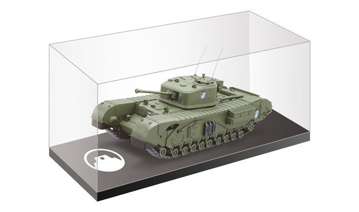第101号以降毎号300円追加する「プレミアム定期購読」の方には、全100号で完成したMk.Ⅳ歩兵戦車 チャーチルMk.Ⅶを納めることができる台座付きディスプレイケースを最終号と同時期にお届けします。
