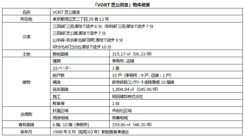 不動産小口化商品『Vシェア』「VORT芝公園Ⅲ 6階・10階」を555口にて販売開始