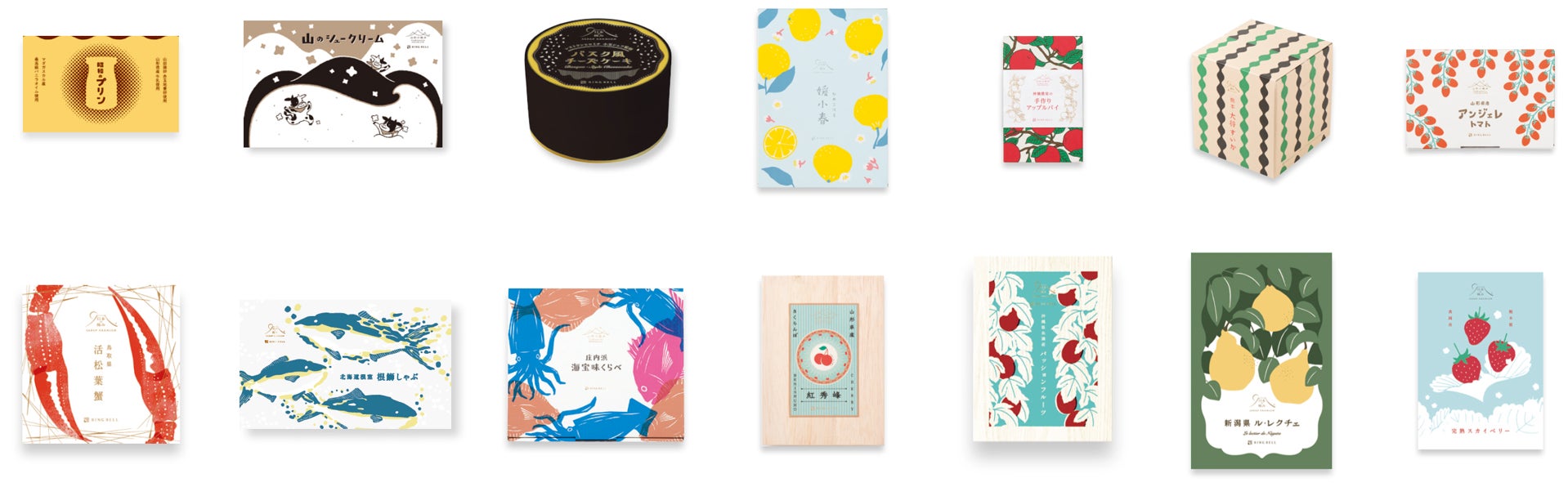 2,000を超える「極み」シリーズのパッケージは、アートディレクターで東北芸術工科大学(山形市)学長でもある中山ダイスケ氏にデザインを依頼。それぞれのギフトの特長を捉えた個性的で愛らしく、楽しいイラストが、贈りものとしての魅力をさらに引き立てています。