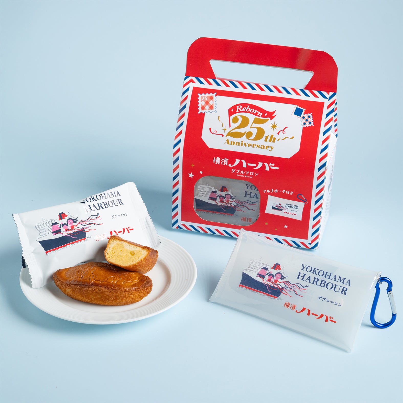 定番の「横濱ハーバーダブルマロン」4個と、ハーバー実寸大のクリアマルチポーチをセットにした限定商品です。ポーチは、お菓子を入れて持ち歩くのはもちろん、小物入れとしてもお使いいただける実用性と可愛らしさを兼ね備えたアイテム。日常の中でもハーバーを身近に感じていただける、25周年記念の特別なセットです。